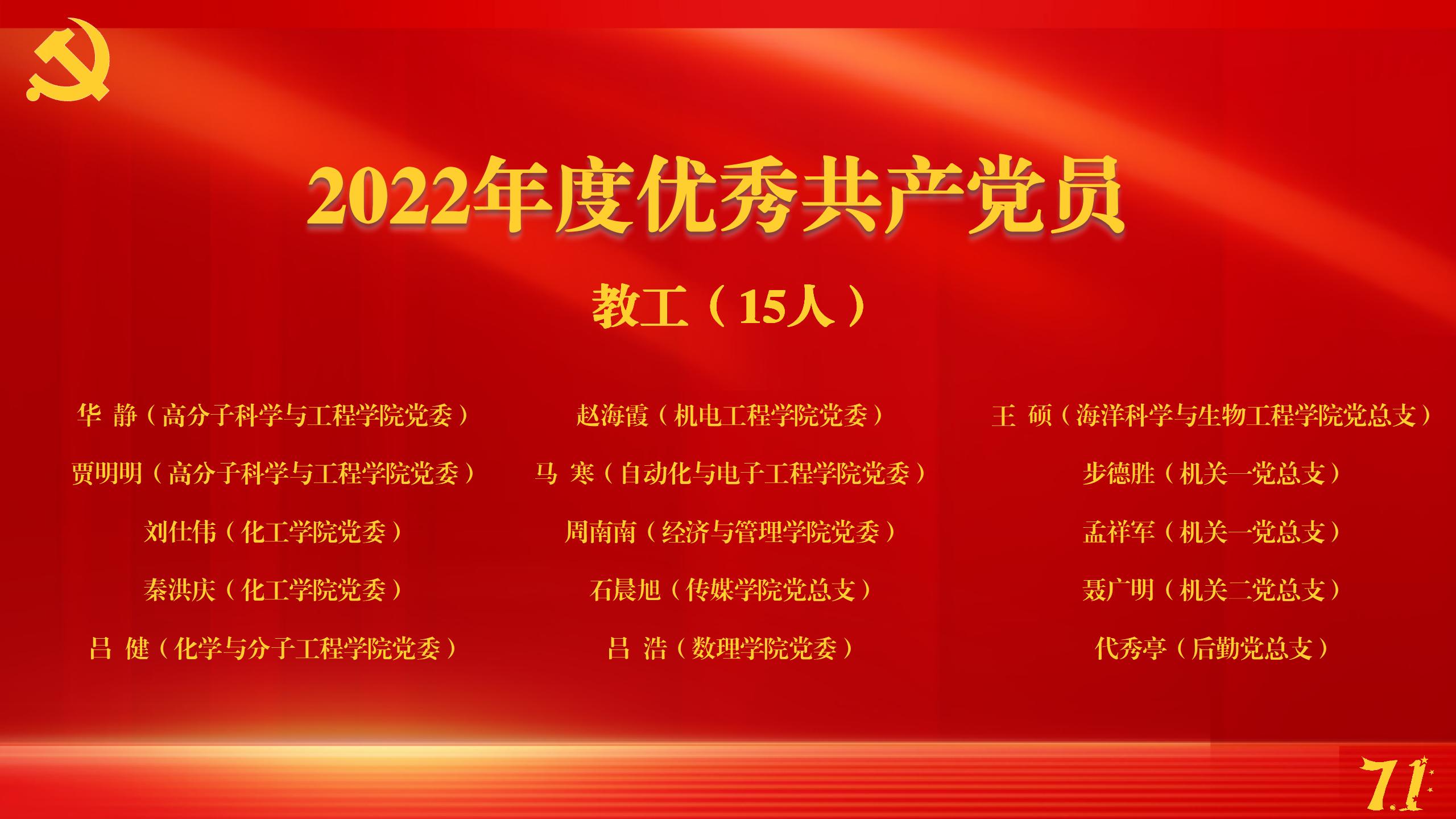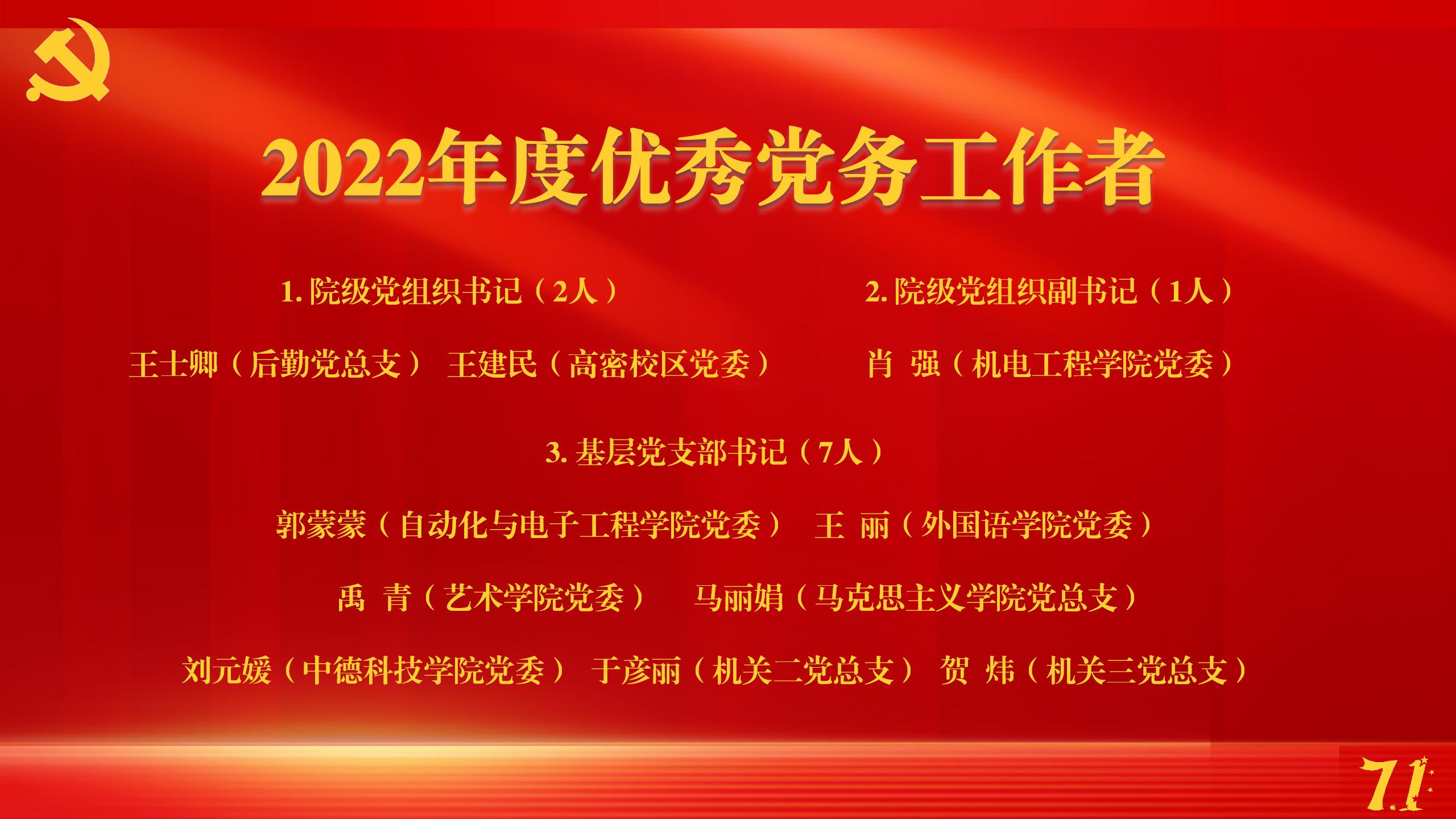 在学校党委的正确领导下,2022年全校各级党组织和广大共产党员、党务工作者坚持以习近平新时代中国特色社会主义思想为指导,认真贯彻落实新时代党的建设总要求和《中国共产党普通高等学校基层组织工作条例》,奋发进取,担当作为,创先争优,在推动学校科学发展、做好疫情防控、服务师生员工、促进校园和谐稳定等工作中作出了积极贡献。在中国共产党成立102周年之际,为表彰先进、弘扬正气、树立典型,推动形成见贤思齐、争做先...