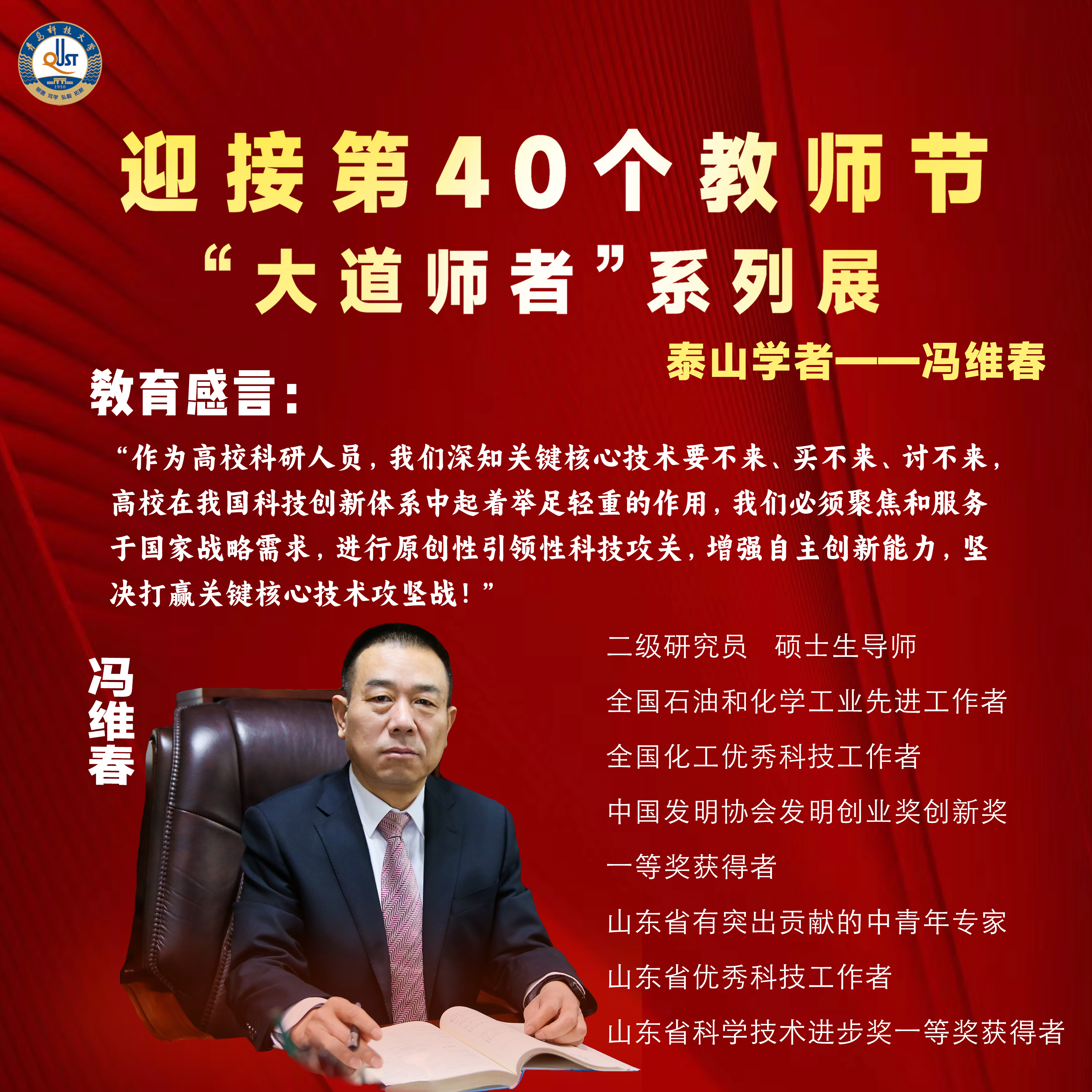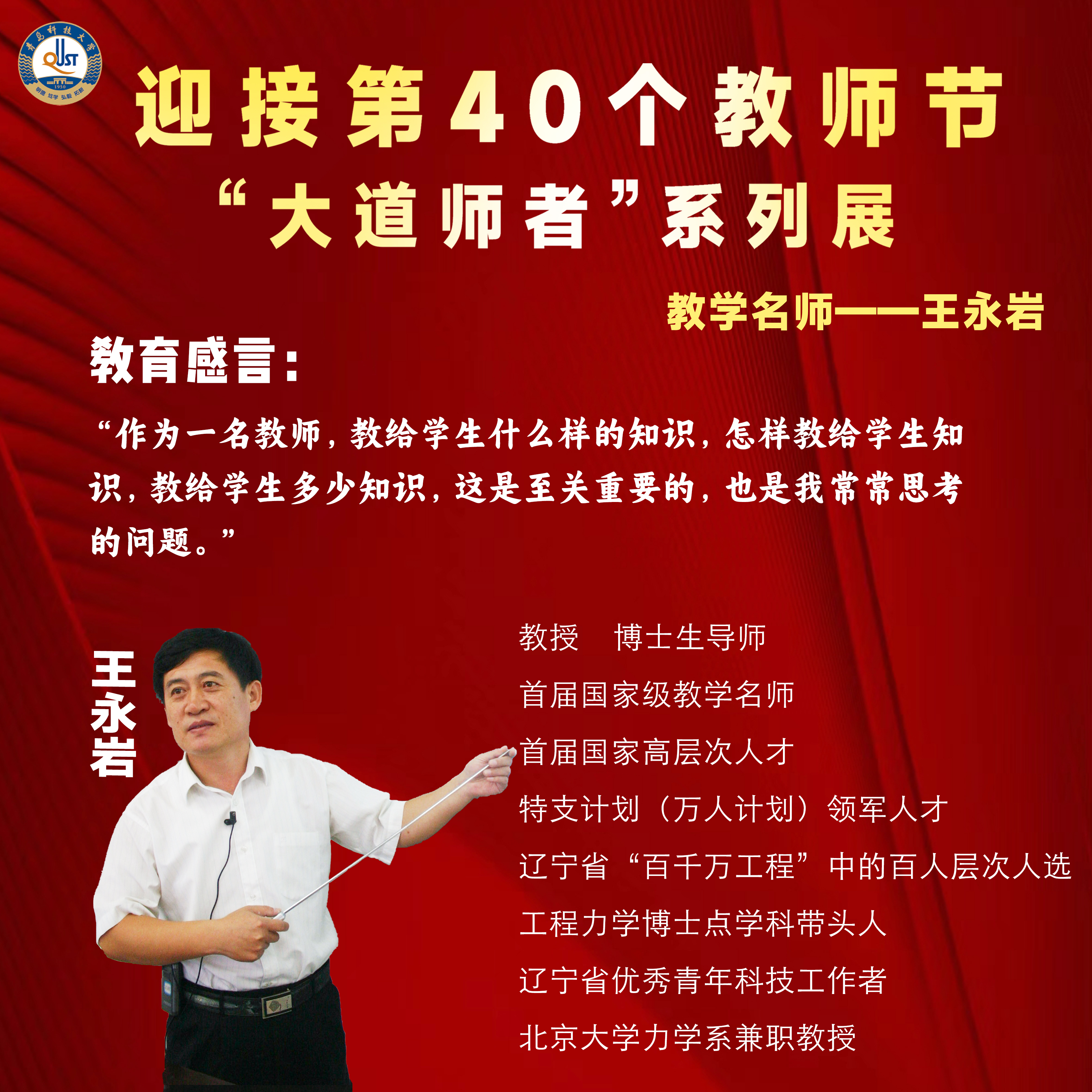 三寸粉笔,三尺讲台系国运;一颗丹心,一生秉烛铸民魂。建校74年来,365完美体育涌现出一批又一批铸魂立心、弘道立身的“大先生”“筑梦人”,他们栉风沐雨、执着求索;他们淬炼自己、孜孜不倦;他们乐于奉献、心有大我。他们将“躬耕教坛、强国有我”的志向抱负切实转化为扎根中国大地、潜心教书育人、培养栋梁之才的实际行动,为教育强国建设贡献着青科大力量。第40个教师节来临之际,学校推出“大道师者”系列展,集中展示...