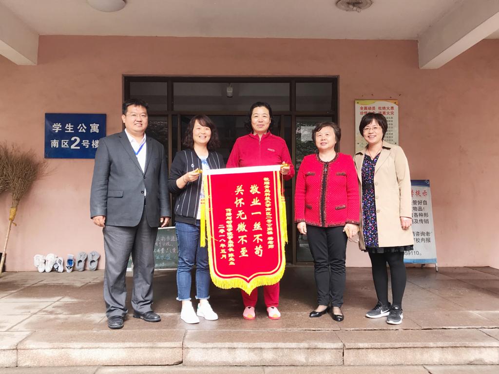 记者 吕艳萍5月22日,崂山校区南2舍公寓楼楼长杨启香收到了一面绣有“敬业一丝不苟、关怀无微不至”的锦旗。这面锦旗是传播学院2017级广告学专业学生陈钰坤家长委托学工办老师送给杨启香的,以感谢她对学生的关心和照顾。“这一面小小的锦旗,不仅体现了宿舍管理员对学生的关爱,也是学生公寓开展‘科大美寓、温馨家园’主题活动服务育人成效的生动写照,是学生辅导员和公寓管理员有机融合‘双育人’的典范。”谈到第六届十佳师...