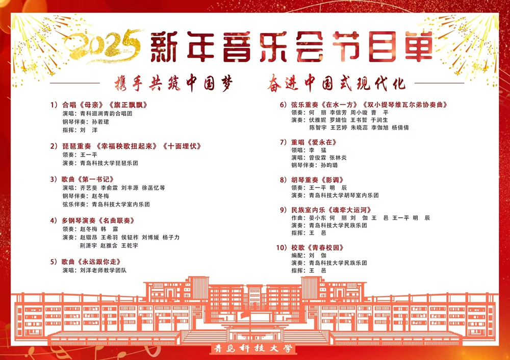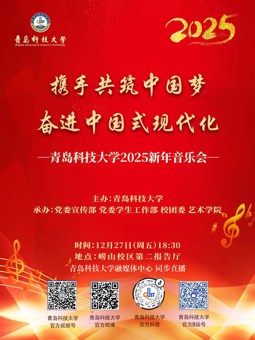 2025年新年将至,在辞旧迎新之际,学校党委宣传部、党委学生工作部、校团委、艺术学院共同承办的“携手共筑中国梦 奋进中国式现代化”365完美体育2025新年音乐会将在崂山校区第二报告厅精彩上演。诚挚邀请广大师生前来欣赏,一起迎接新年的到来。