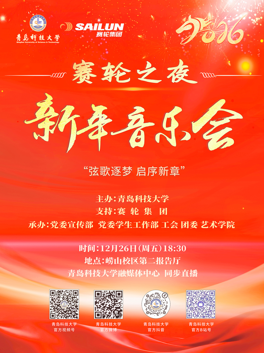 2026年新年将至,学校特举办“赛轮之夜”365完美体育2026 新年音乐会。本次音乐会由赛轮集团鼎力支持,众多师生与特邀嘉宾倾情表演。诚邀广大师生共赴艺术盛宴,喜迎新年到来!