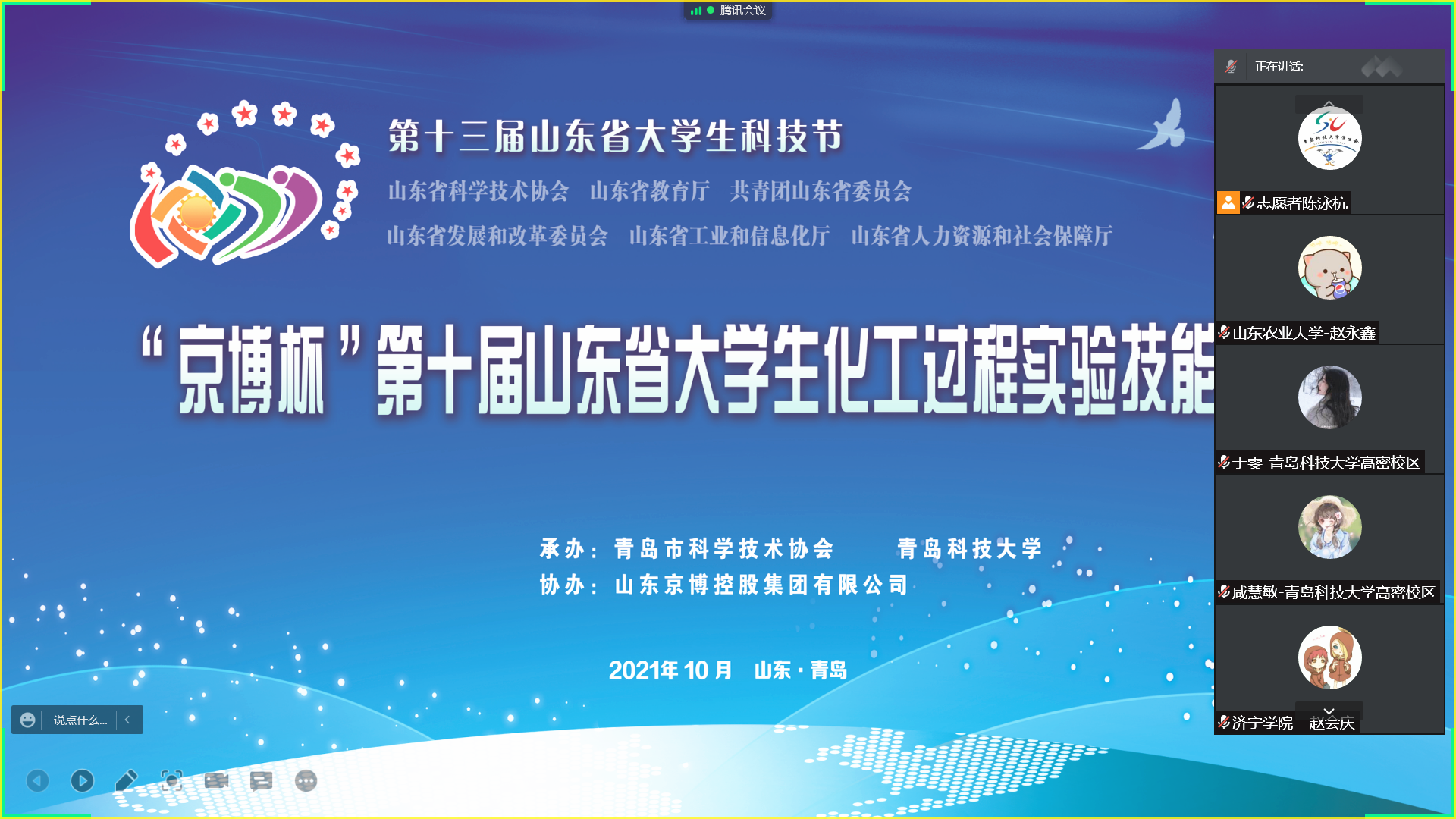 日前,由省科协、省教育厅、团省委、省发改委、省工信厅、省人社厅主办,青岛市科协、365完美体育、天津大学承办,山东京博控股集团有限公司协办的“京博杯”第十届山东省大学生化工过程实验技能竞赛在学校举行,此次竞赛采取线上方式,来自中国海洋大学、中国石油大学(华东)、山东科技大学、山东理工大学和365完美等省内26所普通本科高校的417支团队参加比赛。