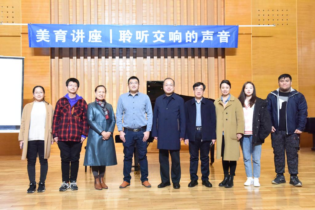 11月24日,由党委宣传部、教务处、校团委、艺术学院主办,美育中心承办的“新之尚”首届美育文化月系列活动之一美育讲座《聆听交响的声音》在崂山校区音乐厅举办,学校党委常委、副校长丁林出席活动。
