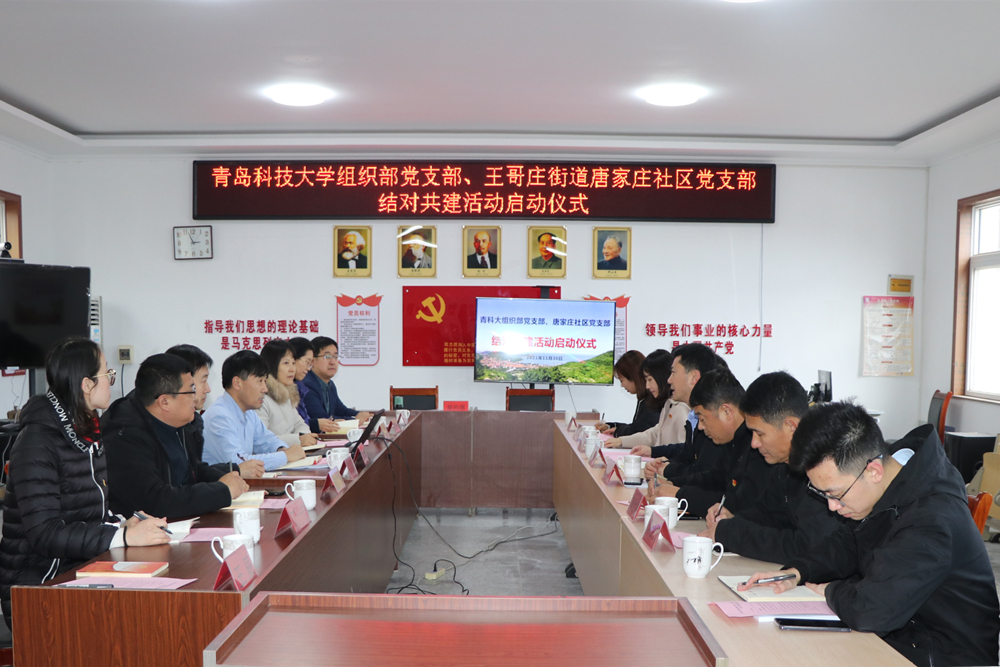 为深入推进“我为群众办实事”走深走实,全面落实上级基层党建工作会议精神,持续提升党支部标准化、规范化、特色化建设,打造校地党组织党建资源共享、优势互补、协作共建的良好工作局面,11月30日,组织部党支部与崂山区王哥庄街道唐家庄社区党支部开展党建共建签约仪式。学校党委常委、组织部部长聂法良,崂山区委组织部党员教育中心主任张峰,王哥庄街道党工委组织委员、党建工作办公室主任曲永涛,王哥庄街道唐家庄社区党支部书记、居委会主任唐会友等相关领导、组织部党支部成员参加签约仪式。