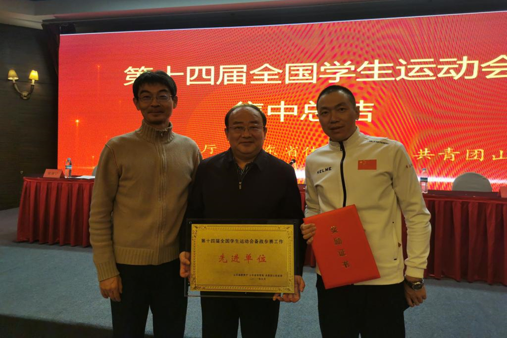 会议由山东省体育局副局长张柄臣主持,团省委副书记尚胜波宣读《山东省教育厅 山东省体育局 共青团山东省委关于对第十四届全国学生运动会先进集体先进个人等进行表扬的通报》,省教育厅、体育局、团省委领导向先进集体、先进个人颁发奖牌、证书。