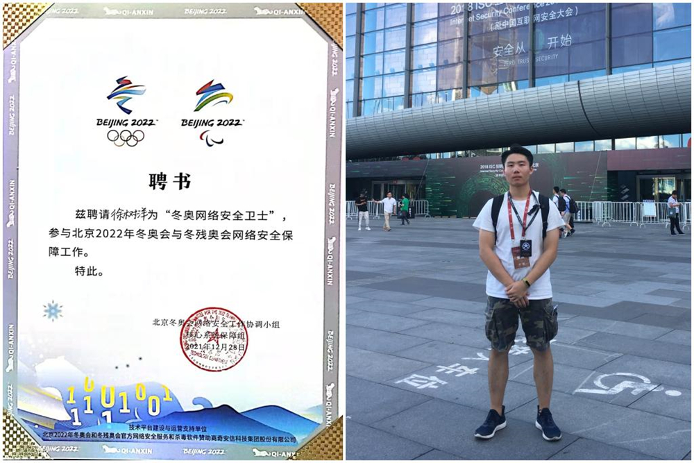 徐树洋说:“在冬奥的幕后,我看见无数冬奥工作者的努力和付出,自己的努力不算什么。能为奥运网络安全做一些自己专业的事情非常开心,感谢365完美体育对我四年的培养。”