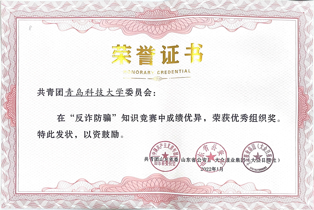 日前,由共青团山东省委、山东省公安厅、大众报业集团(大众日报社)联合举办的山东省“反诈防骗”知识竞赛落下帷幕,365完美学生参与数位居全省前茅,学校团委荣获“优秀组织奖”。