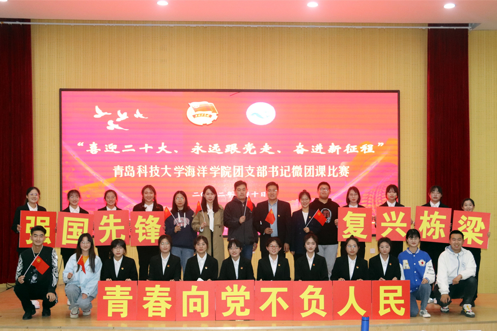 为认真学习贯彻习近平总书记在庆祝中国共产主义青年团成立100周年大会上的重要讲话精神,庆祝中国共产主义青年团成立100周年,迎接党的二十大胜利召开,5月10日晚,海洋学院举办“喜迎二十大、永远跟党走、奋进新征程”主题微团课比赛。