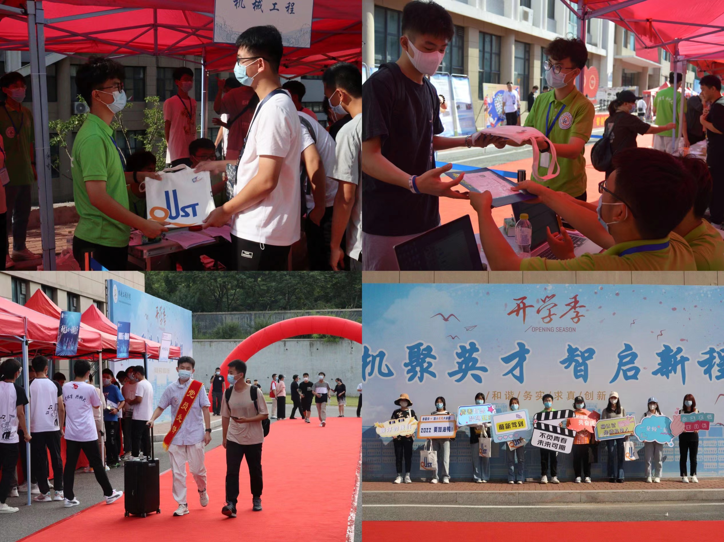 用情护航,奉献、细致、温暖,顺利迎接大学生活。学院坚持守正创新,分工协同,热心服务,把方便留给新生,把满意留给家长。学院志愿者在开学完成新生100%对接,建立2022级官方新生年级群、专业群、班级群,就校园布局、学业课程、科大美食、周边环境等进行介绍答疑。在入学前详细摸排学生健康码、行程码、核酸检测证明、所在地疫情等信息,每日收集更新新增疫情地点和场所,在学院群和班级群中发布疫情防控期间的入校温馨提示,全力保证入校新生符合疫情防控政策规定。报到当天,学院在迎新工作点设置“党员先锋岗”“绿色通道”“志愿服务亭”等,为新生现场引导答疑。学院的迎新志愿者奔走在校园的各个角落,为新生指引方向,协助新生搬运行李,帮助新生完成报到手续,全面推动志愿服务实现新提升。每一名志愿者用饱满的热情、踏实的行动和对志愿服务精神的坚守彰显了机电学子的青春风采,践行了新时代大学生的责任担当。
