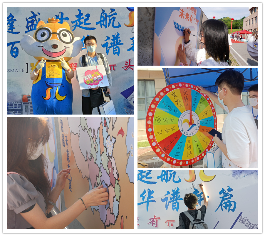 校院两级领导亲临迎新现场,看望前来报到的新生,检查指导迎新工作,新生代表为领导老师佩戴学院院徽并留念合影。迎新现场气氛活跃,工作安排井然有序。迎新现场合理设置报道流程和迎新入学通道,并在设计中融入学院标志性人文元素、思政育人元素和专业特色,从绿色通道、资助政策宣传、报道证件查验、科创展示区、行李存放区、新生休息区,到“优秀学子风采榜”“考研风采榜”“科创达人展示区”,为新生发放迎新大礼包,创意“数小π”吉祥物拍照打卡,精心设计“π之星”幸运大转盘,点亮青春“π”拼图,留下新生“π”足迹,记录“数“说相遇的珍贵时刻,许下未来有“理”的美好心愿。