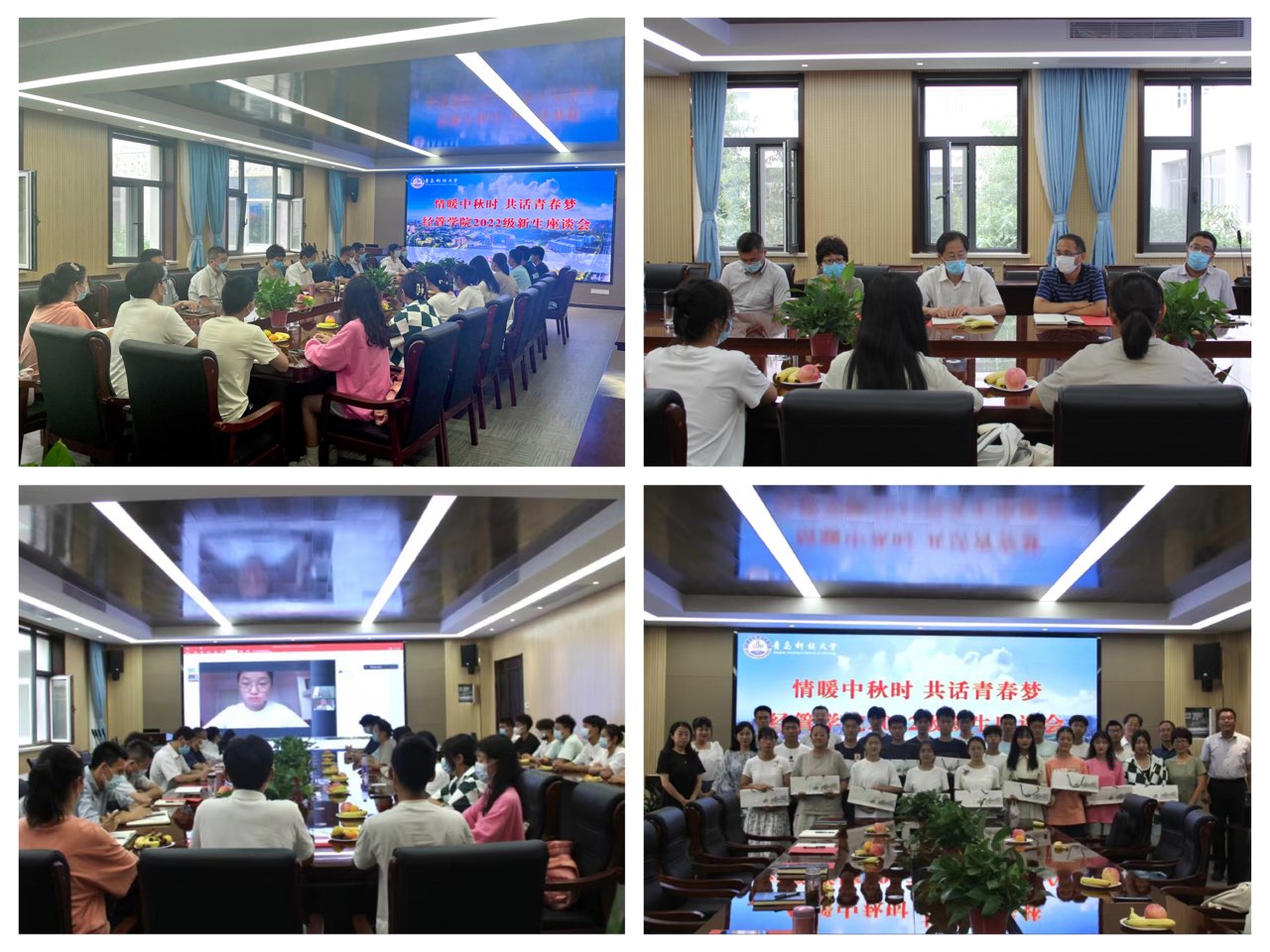暖心座谈鼓干劲。9月9日下午,学院在经管楼313会议室举办“情暖中秋时 共话青春梦”2022级新生代表座谈活动。学院领导班子成员及部分辅导员出席座谈会。在校新生代表分享了入校一周来的所思所感,并畅谈了对未来大学生活的规划和向往;暂缓返校新生代表表达了自己对回归校园的渴望,并感谢领导老师对未返校同学的关心关怀。会后,学院领导老师为22级新生代表送上青科大特色定制月饼,强化了节日氛围,促进了师生间的情感交流。