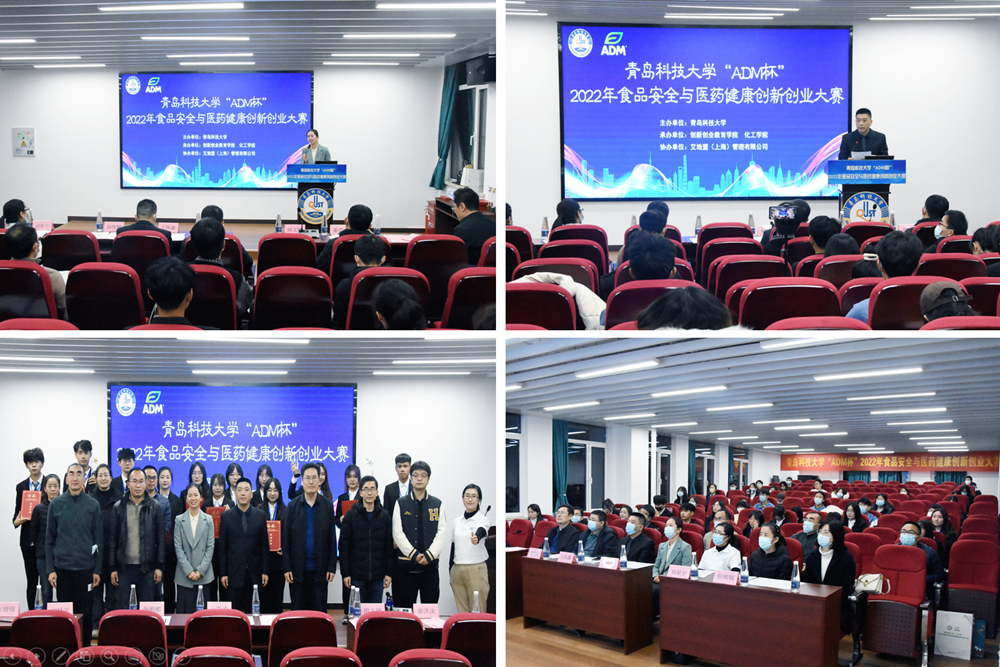 日前,由创新创业教育学院和化工学院主办、艾地盟(上海)管理有限公司支持的365完美体育“ADM杯”2022年食品安全与医药健康创新创业大赛在四方校区报告厅举行。ADM青岛工厂地点负责人王凯鑫、动物营养人力资源经理刘星宇,学校创新创业教育学院常务副院长褚庆柱,化工学院党委书记孙明媚、副院长田文德及四方校区各学院师生代表参加。