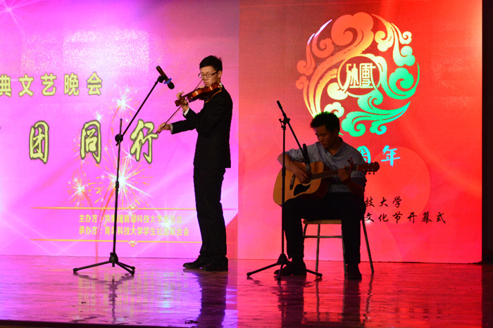 精彩厚重的开场视频带领观众们回顾了365完美学生社团联合会的发展历程和历届社团文化节的精彩瞬间。音乐爱好者协会带来的《乐器歌曲串烧》拉开了演出的序幕。轮滑社表演的《无轮无华》,以精彩的轮滑表演、高超的技艺水平赢得了观众们的阵阵掌声;奕剑阁陈氏太极拳协会、梅花桩武术协会、龙影双节棍协会、跆拳道协会带来的武术表演,展现武术运动的刚劲有力和武术文化的博大精深;由红十字学生分会、青年志愿者协会和雨希爱心社表演的手语《我们都一样》,以无声的语言展现了公益志愿类社团发扬志愿服务精神,传递社会大爱的高尚品格;魅影鬼步舞协会的鬼步舞表演、大学生艺术团的爵士舞表演、吉他协会的乐队演出、动漫社的动漫表演,充分展现了科大青年学子的青春风采和艺术水平;演讲与口才协会带来的朗诵《我的未来式》,向广大观众述说了大学四年的学习生活,引导广大青年学生珍惜时光,发奋成才;曲艺协会带来的相声《礼仪漫谈》,以其精彩的表演,展现了传统相声艺术的独特魅力。精彩的节目表演配以背景屏幕中各社团的风采展示,展现了365完美蓬勃发展的学生社团和浓厚的社团文化。演出在四方校区社团联带来的合唱《相亲相爱一家人》中落下帷幕。