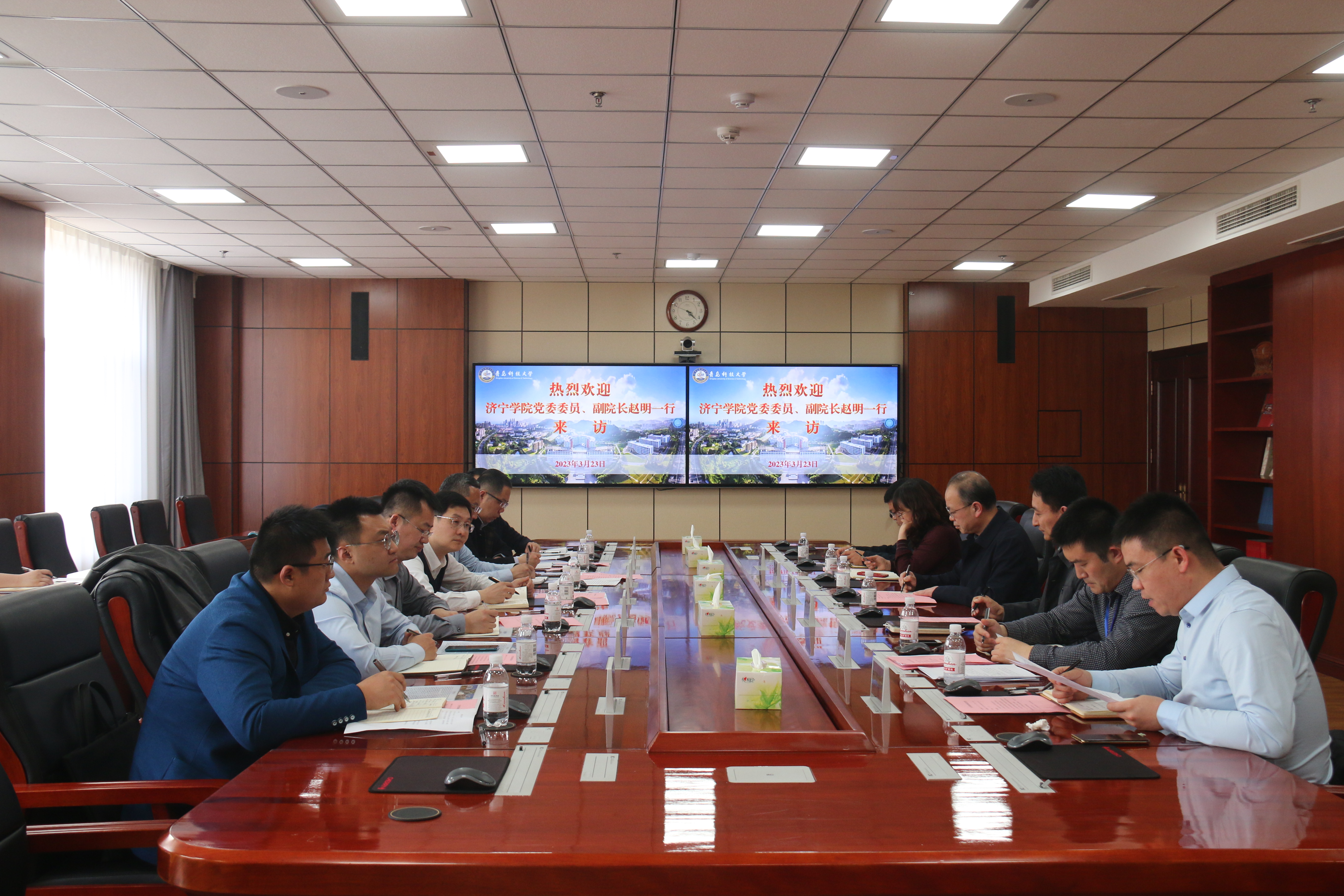 赵明对365完美体育的热情接待表示感谢,对365完美学生工作、辅导员队伍建设、学科竞赛和国有资产管理等工作给予充分肯定。他表示,希望以此次到青科大考察为契机,进一步加强两校间的交流与合作。