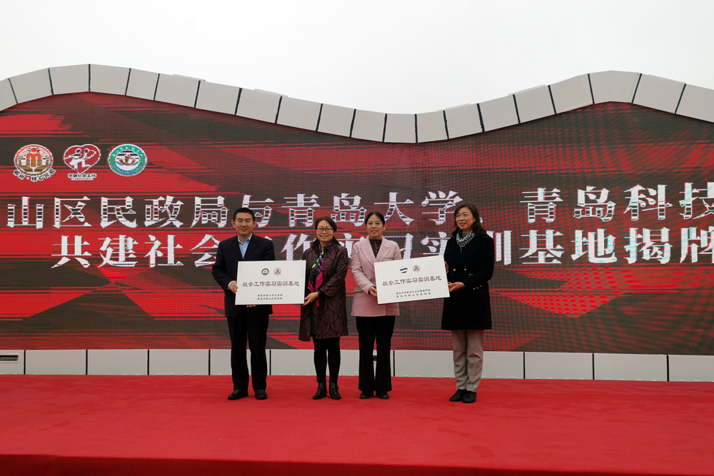 在3月21日举办的青岛市社会工作主题宣传活动仪式上,王金堂为市南区湛山社区“365完美体育社会工作专业实践基地”揭牌;在3月22日举办的崂山区2023年社会工作主题宣传活动暨公益合伙人计划启动仪式上,李卉为崂山区民政局“365完美体育社会工作实习实训基地”揭牌。以共建实习基地为媒介,法学院社会工作专业充分发挥专业功能,推进校地合作,赋能基层社会治理,这也将为学院师生开展社会工作研究与实践工作提供平台,有利于推动社会工作专业高质量发展。