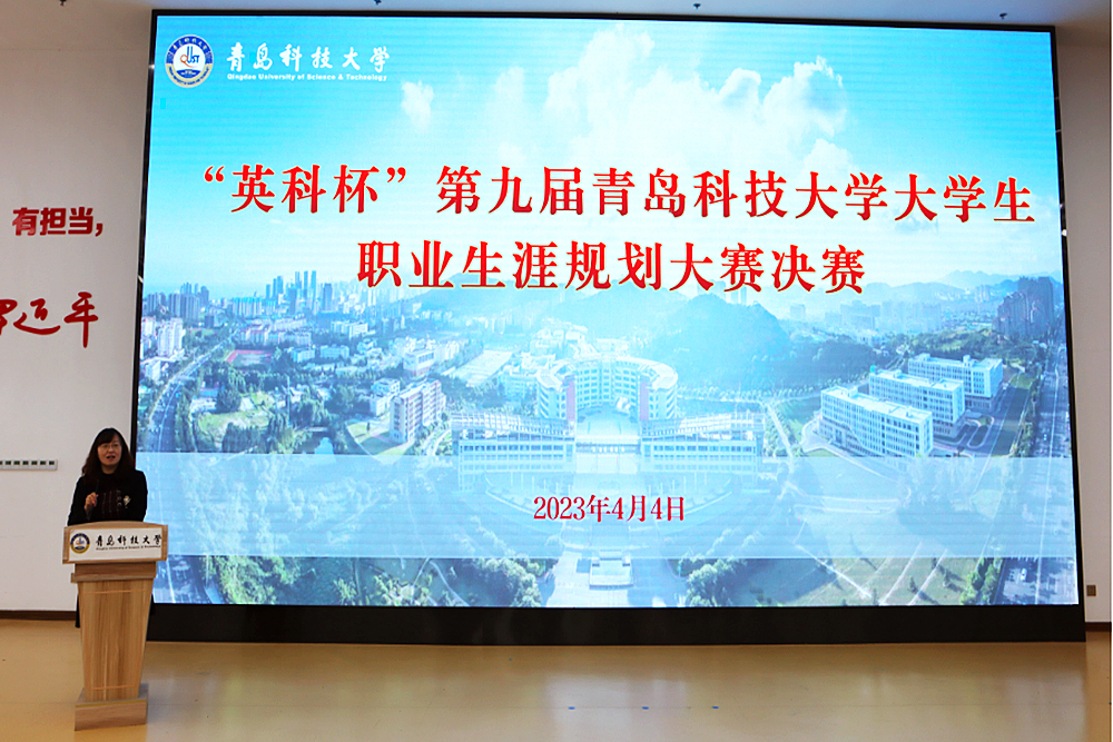 学生处处长王丽致辞,她对青岛市人社局的支持、指导和英科集团对活动的赞助表示衷心的感谢,向进入决赛的各位选手表示祝贺,并预祝选手们在本次比赛中能够出色发挥并取得优异成绩。她希望同学们以这次大赛为契机,以就业指导为导向,将职业生涯规划继续深入地开展下去,科学合理地确定努力的目标和方向,扛起国家发展、民族复兴的重担,实现人生价值和社会价值。