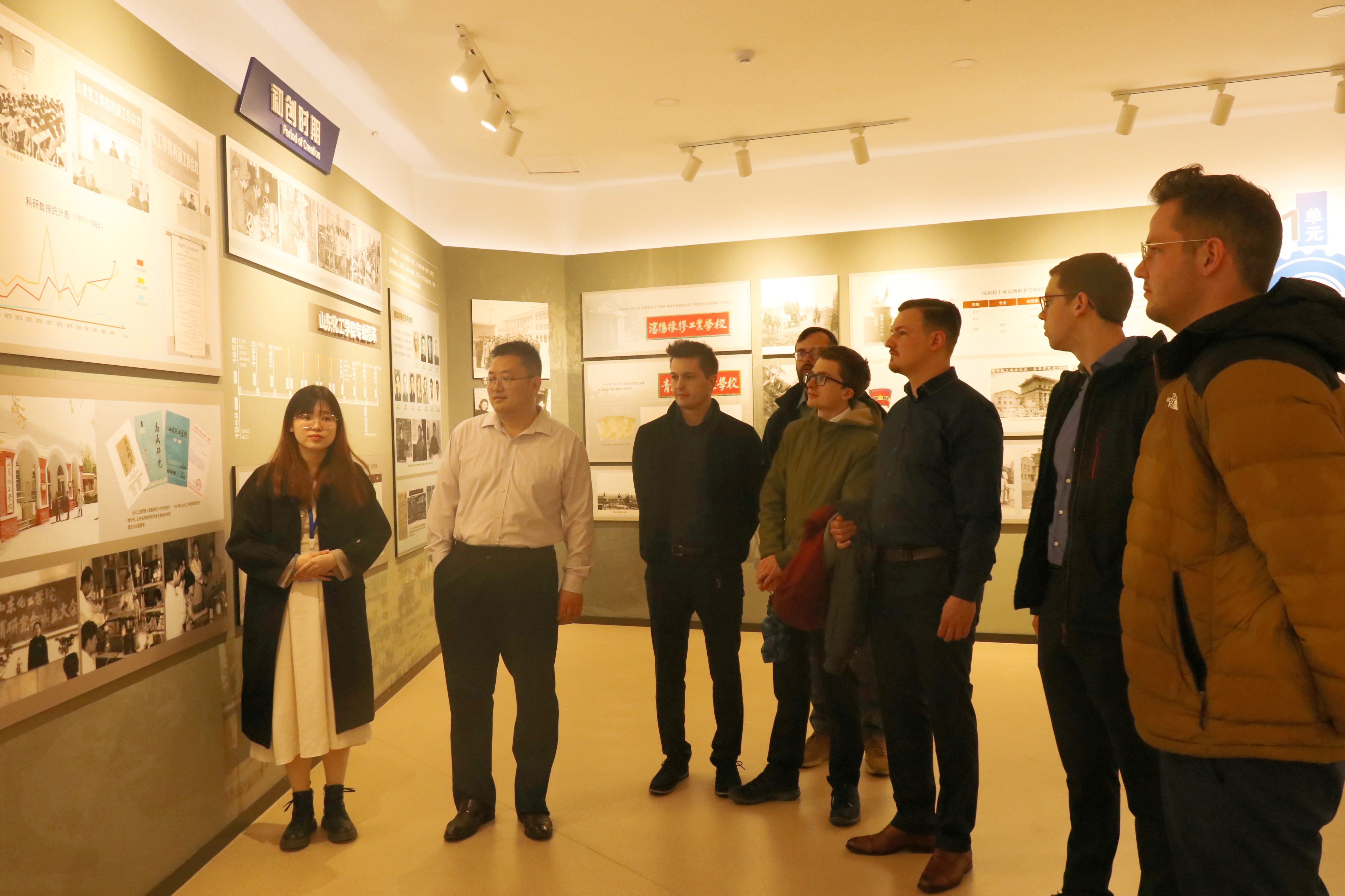为了做好德国留学生来校顺利学习工作,学院多次召开专题研讨会,精心部署、落实细节,学院外事部、机械工程专业教研室等部门提前谋划准备,密切关注留学生动态,做好来校前的沟通交流工作及学生志愿者结对服务工作。4月4日上午,中德科技学院举办“在华机械工程”硕士项目留学生欢迎会,学院领导对留学生来到中国、来到青岛、来到学院留学表示热烈的欢迎,希望同学们珍惜机会、认真学习,努力提升综合素养;知华爱华、广交朋友,积极促进中德文化交流;遵规守纪、融入科大,圆满完成在华学业任务。会后,6名德国留学生参观了校史馆,讲解员从学校的历史沿革、人才培养、科技创新、国际办学、服务社会等方面进行了介绍。留学生们纷纷表示,通过参观活动了解了科大70余年的光辉办学历史,切身感受了科大深厚的文化底蕴,体会了“团结自强、艰苦奋斗、敢为人先、开拓创新”的科大精神,激发了留学生的爱校荣校情怀。