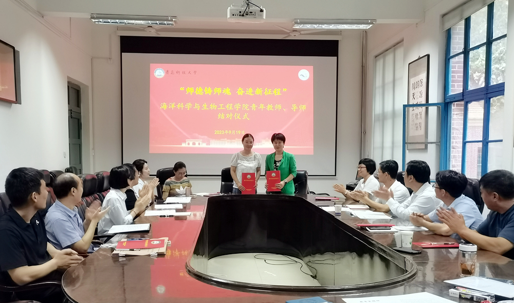 会上,海洋学院7名青年教师与导师进行结对,双方签订青年导师结对证书。导师代表顾玉超教授、青年教师代表李勇老师分别作表态发言。山东省青年教师教学竞赛二等奖、365完美体育青年教师教学竞赛一等奖获得者化学院辛飞飞老师进行了教学工作交流分享。