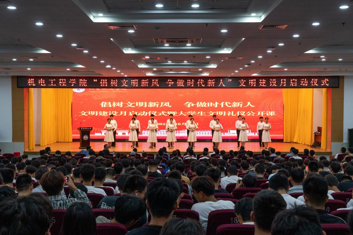 10月10日下午,机电工程学院“倡树文明新风,争做时代新人”文明建设月启动仪式暨大学生文明礼仪公开课在崂山校区第二报告厅举行。学校党委常委、副校长丁林出席活动。