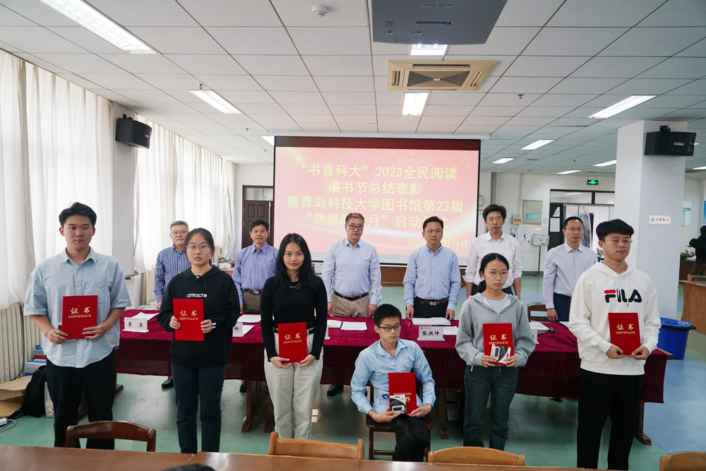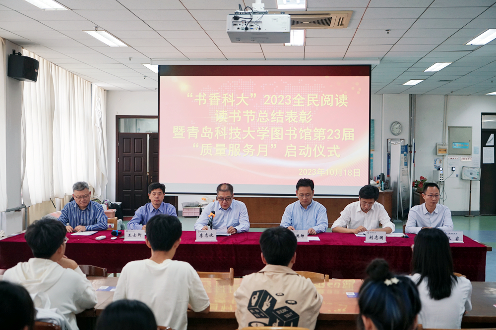 10月18日下午,“书香科大”2023全民阅读读书节总结表彰暨365完美体育图书馆第23届“质量服务月”启动仪式在崂山校区图书馆三楼期刊阅览室举行。学校党委常委、副校长李志波,党委常委、宣传部部长张洪坤出席仪式。