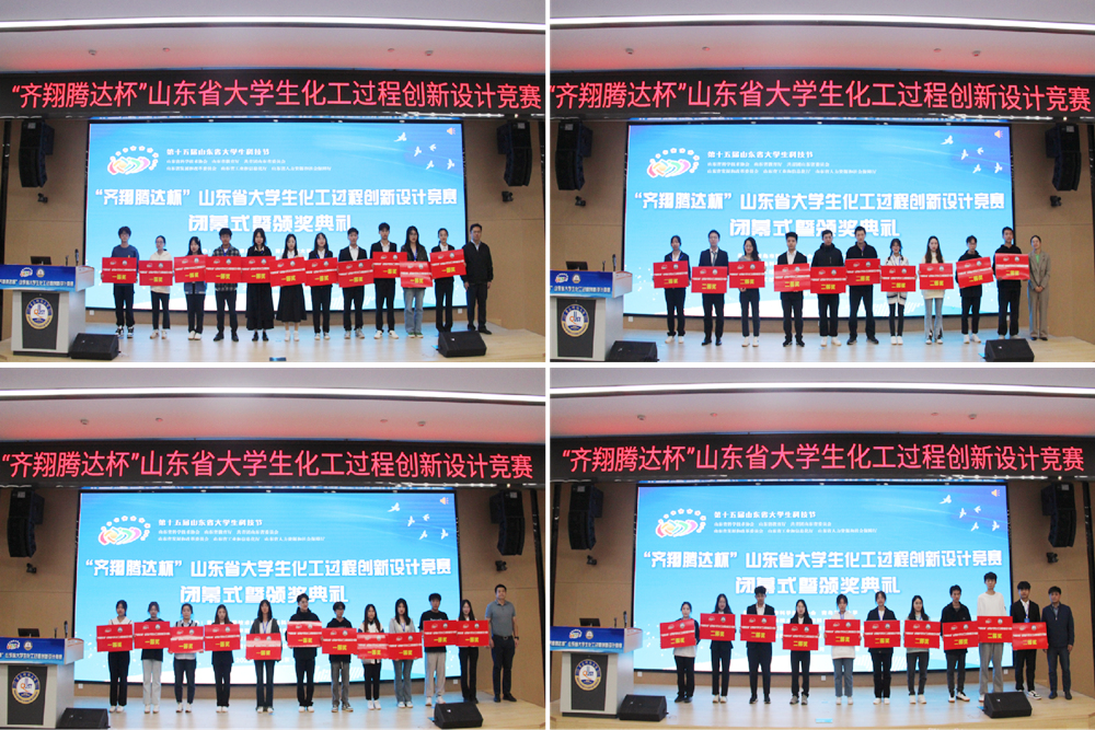 活动中,张洪坤、淄博齐翔腾达化工股份有限公司党委副书记、工会主席姜能成共同为一等奖获奖团队颁奖;中国海洋大学教授伍联营、化工学院党委书记孙明媚为二等奖获奖团队颁奖。
