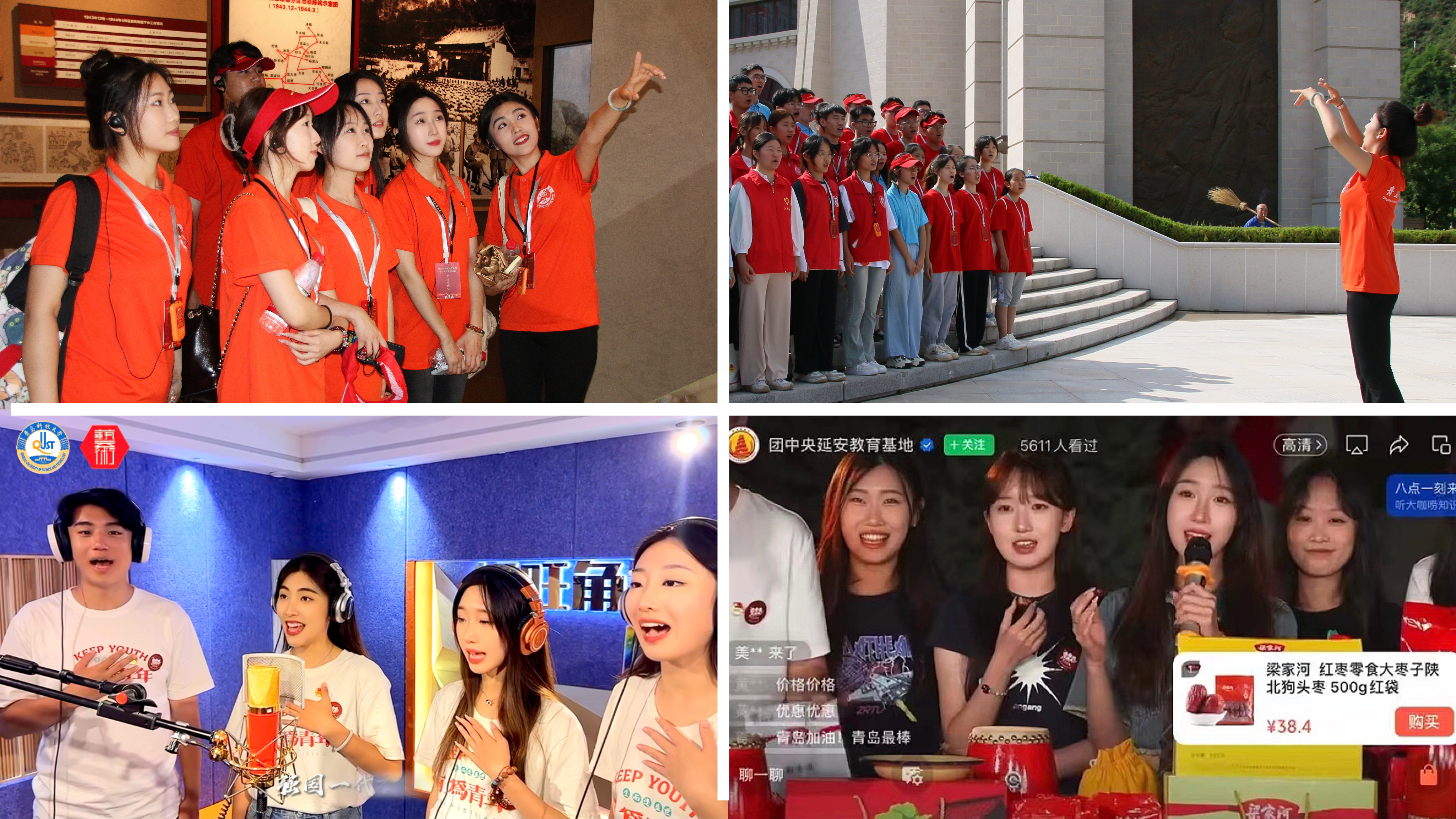 在延安社会实践期间,经管学院“听见延安”乡村振兴观察团旨在调研红色文化、经济、旅游等领域的乡村振兴成果,实践队通过走访革命旧址等,深刻感悟革命先辈的奉献精神。本次实践活动被山东省教育电视台、青岛广播电视台、青岛早报、云播青岛等多家主流媒体报道,总转发量、浏览量达2.5万次。艺术学院“艺颗红心·青春同行”艺术姐姐实践团将延安红色文化与学院音乐、美术、设计专业进行深度融合,精心打造“曲”“画”“创”三位一体的艺术实践活动,《强国一代有我在》延安版MV视频在团中央延安教育基地、中国青年网、中华网等多个官方视频号播出,团队成员参与共青团“青耘中国·夏耘梦想”直播助农活动,为乡村振兴贡献青春力量。
