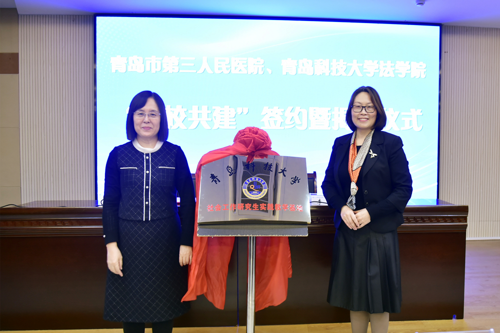 11月23日,学校与青岛市第三人民医院共建“研究生实践教学基地”揭牌仪式举行。学校法学院党总支书记李卉与青岛市第三人民医院院长于华共同签署社会工作实践联合教学项目合作协议,并为“社会工作研究生实践教学基地”揭牌;青岛市第三人民医院党委书记徐晟伟致辞。