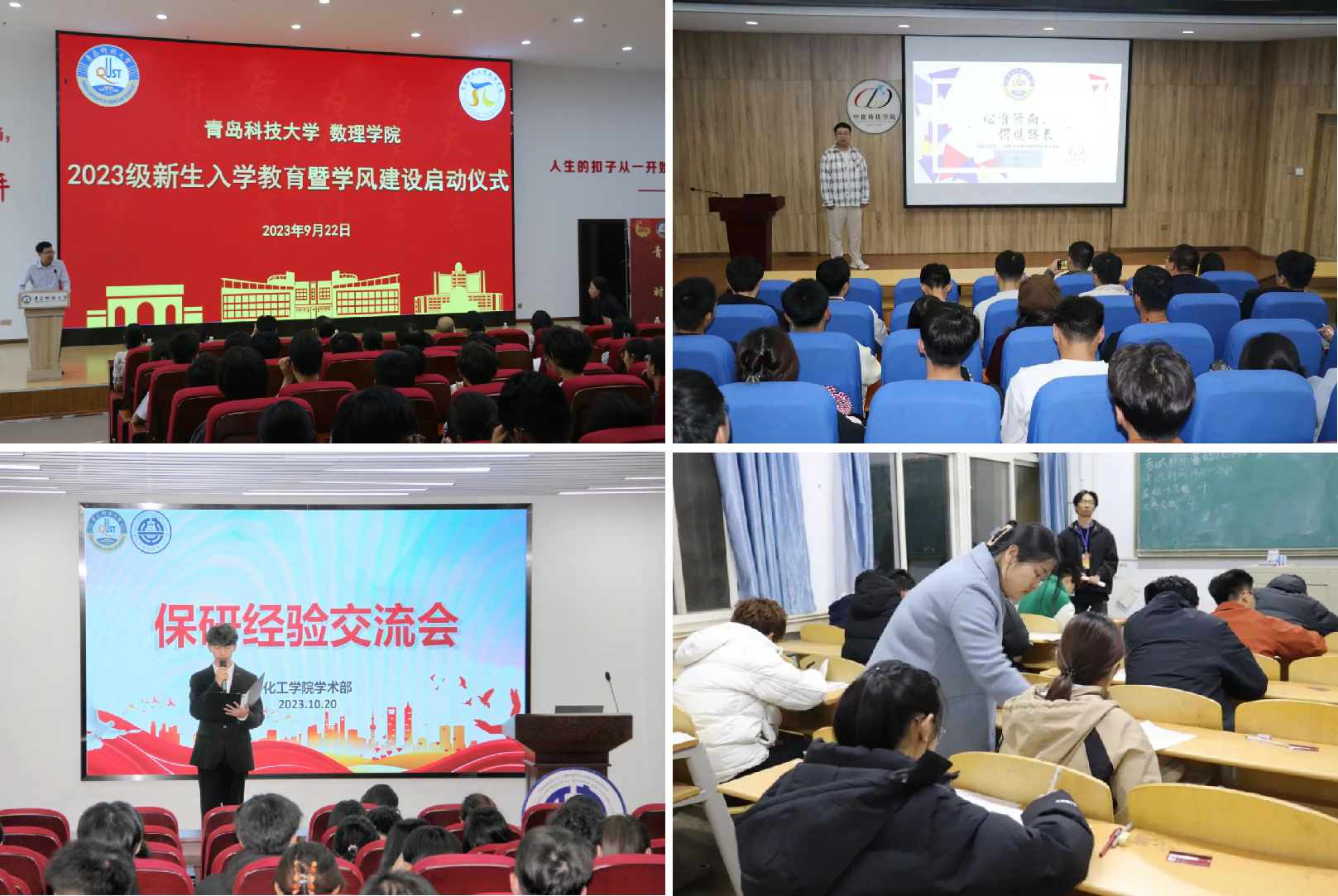 化学院依托“惟真惟德大讲堂”品牌,开展学生榜样宣讲会和科创竞赛经验交流会,营造热爱学习的优良氛围,为学生深度参与科技创新指明道路。自动化学院举办“博学笃志树学风,勤勉致知铸良才”第五届学风建设月活动,围绕学术讲座、期中考试、30天单词打卡、榜样引领、晚自习等系列活动,推进学院优良笃实的学风建设。中德科技学院持续开展“中德下午茶——领航学长面对面”专题活动,邀请国家奖学金获得者分享经验,引导学生制规划、明目标、重学习、提素质。数理学院紧抓本科教育教学评估有利契机,制定实施方案,落实大一每周两次晚自习和领航学长跟班制度,开展党员“结对子”活动,形成“比学赶帮”的优良效应。高密校区严格落实班主任、辅导员进课堂听课制度,打造“高”字系列学风建设论坛,构建“班级导师—学生骨干—辅导员(班主任)—家长”四位一体的立体化学业指导模式,引导学生爱国、励志、求真、力行。