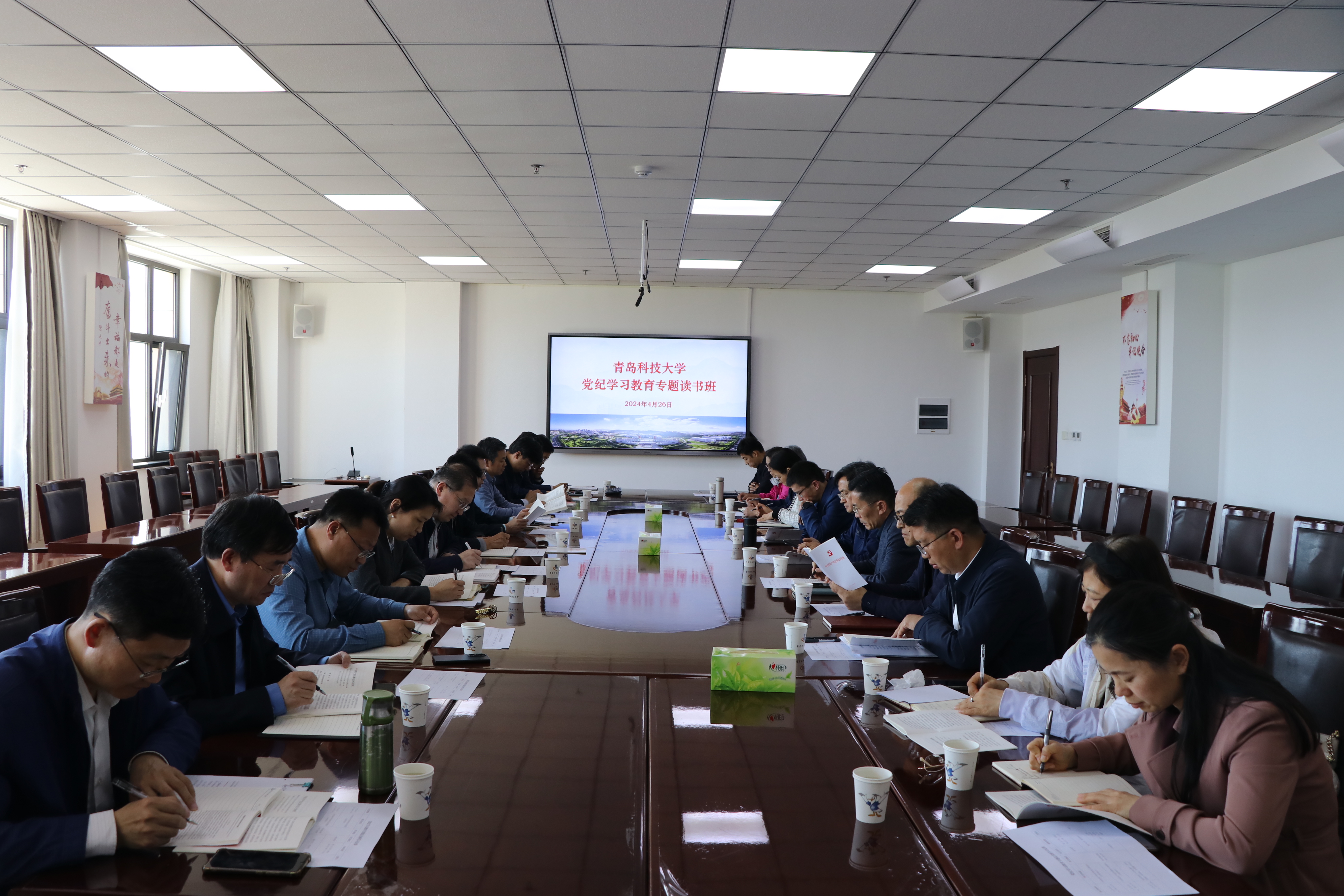 为深入学习贯彻习近平总书记关于党纪学习教育的重要讲话和重要指示精神,进一步推动党纪学习教育走深走实,根据工作安排,4月26日下午,学校党纪学习教育专题读书班在崂山校区综合服务楼3015会议室举行。