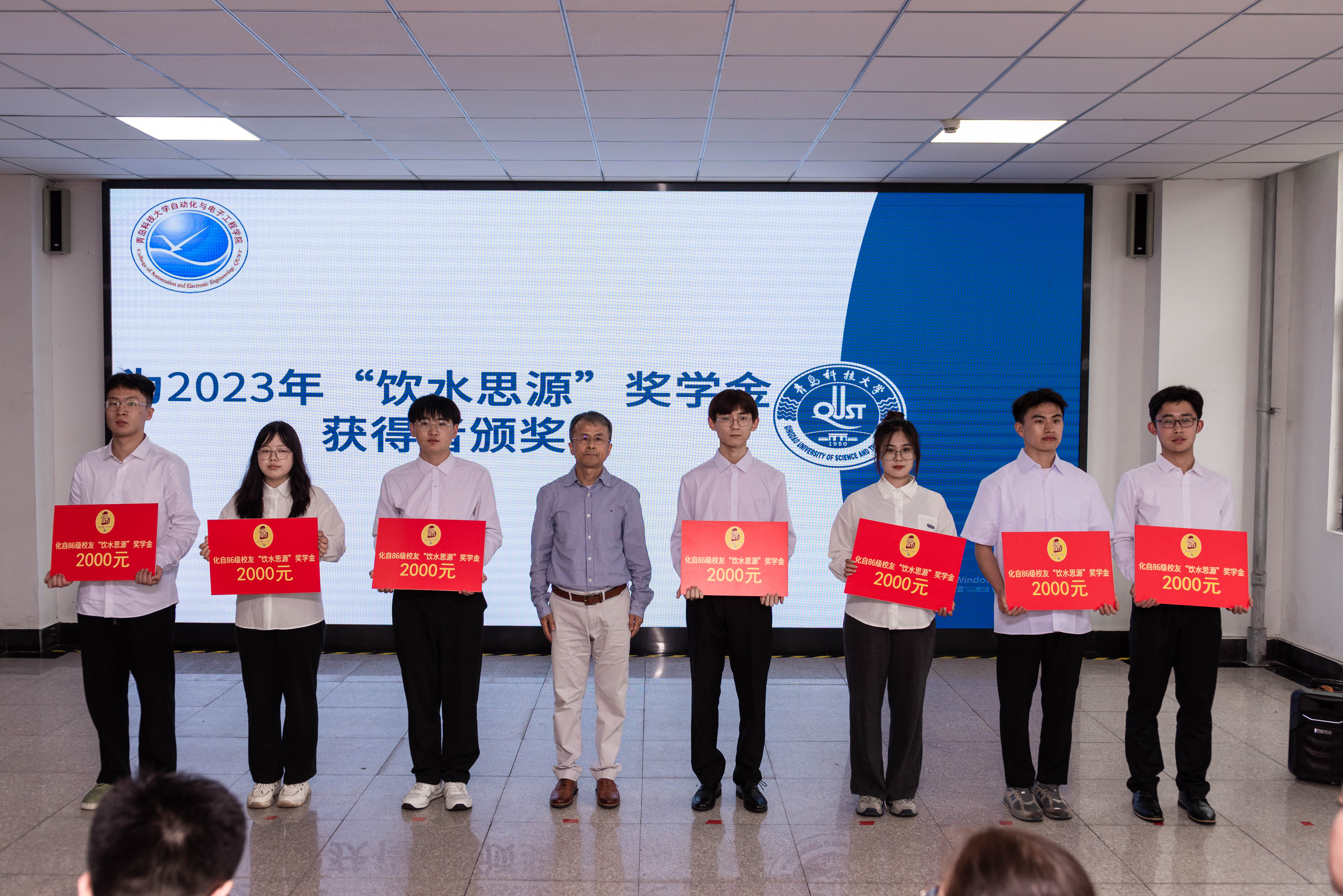 与会嘉宾为获得2023年“饮水思源”奖学金的毕业生、山东省优秀毕业生、体育达人、学科竞赛达人、考研典型、高质量就业典型、基层就业典型等优秀学生代表颁奖。