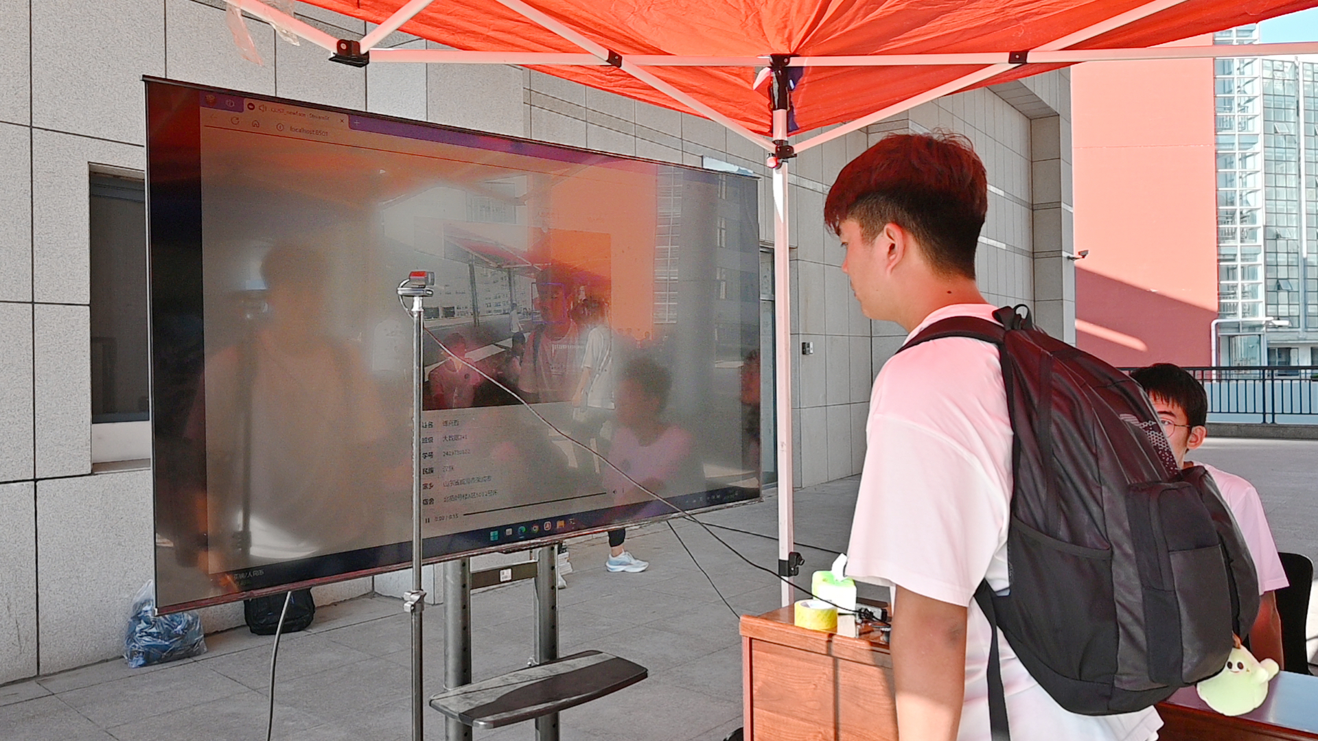 数据科学学院将专业特色融入迎新现场,让新生从入学伊始便感受到满满的“智能化”“科技感”,增强了学生对专业的自信,对未来学习生活的期待。AI赋能秒办手续。学院师生自主研发新生报到人脸识别系统,1秒完成所有报到手续办理,提升学生、家长获得感的同时,增强学生专业认同感。Data助力有问必答。学院专门制作“问答语料库”,训练“校园生活自主问答系统”全面细致回应学生关心、关注、关切的校园生活、奖学金等问题,一问一答中体现教育温情。智慧模型迎“新生相”。迎新现场每位新生都领到了用训练生成的独具特色的卡通形象照片,新生们亲手将照片拼成“Data”和“AI”属于自己的两个专业,象征着正式加入数科大家庭,仪式感满满。
