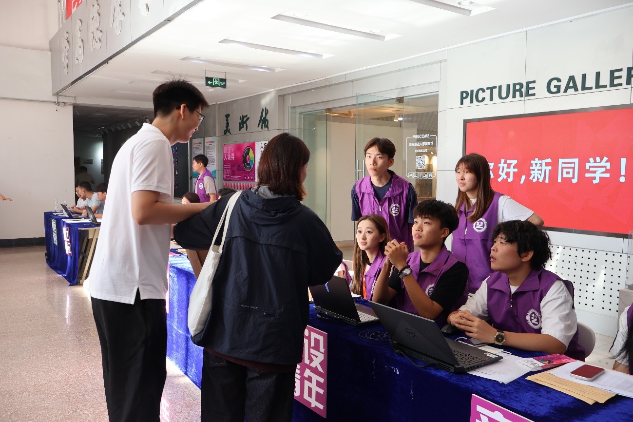 志愿服务,贴心周到。“艺术姐姐”志愿服务队成为了迎新现场的一道亮丽风景线。她们身着紫马甲,忙碌地为新生们提供引导、咨询、搬运行李等一站式服务。她们的热情与周到让新生们感受到了家的温暖,也成为了他们入学第一天最难忘的身影。