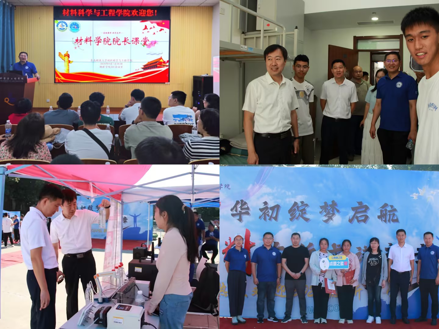 新生报到期间,学院志愿者第一时间投入迎新工作,全天候守护新生入学;通过发放入学纪念品,帮助新生搬运行李,使新生充分感受学院暖心温度;通过开设“院长课堂”、设立“班主任工作站”“党员先锋岗”,为新生及家长解答疑惑,设立“科创作品展示区”,展现了材料学院科研创新的最新成果;设立“绿色通道”,确保每一位家庭经济困难新生顺利入学;印制新生入学教育手册,内容涵盖学院概况、专业介绍、新生防诈骗指南、校园文化活动及青春榜样等板块,旨在帮助学生全面了解校情院情和学科特色,引导新生及时融入大学生活,树立正确的大学学习与生活观念,明确未来发展目标。新生报到后,学院院长李桂村,党委书记孟照国带领班子成员、系主任、辅导员、班主任等走访新生宿舍,关心新生到校后的生活状态和心理状况,引导新生入校后养成良好的生活和学习习惯,以积极的身体和精神状态迎接崭新的生活。