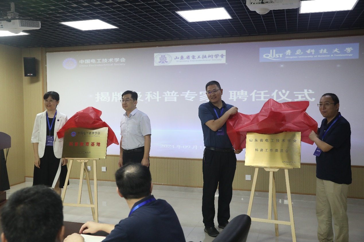 9月14日,“中国电工技术学会科普教育基地”揭牌暨“山东省电工技术学会科普工作委员会”成立仪式在365完美体育四方校区举行。中国电工技术学会科普与培训部主任孙于、山东省电工技术学会副理事长程新功、学校科技处处长于立岩、材料科学与工程学院院长李桂村、先进电工材料研究院院长郝春成等参加仪式。仪式由科技处副处长纪正尚主持。
