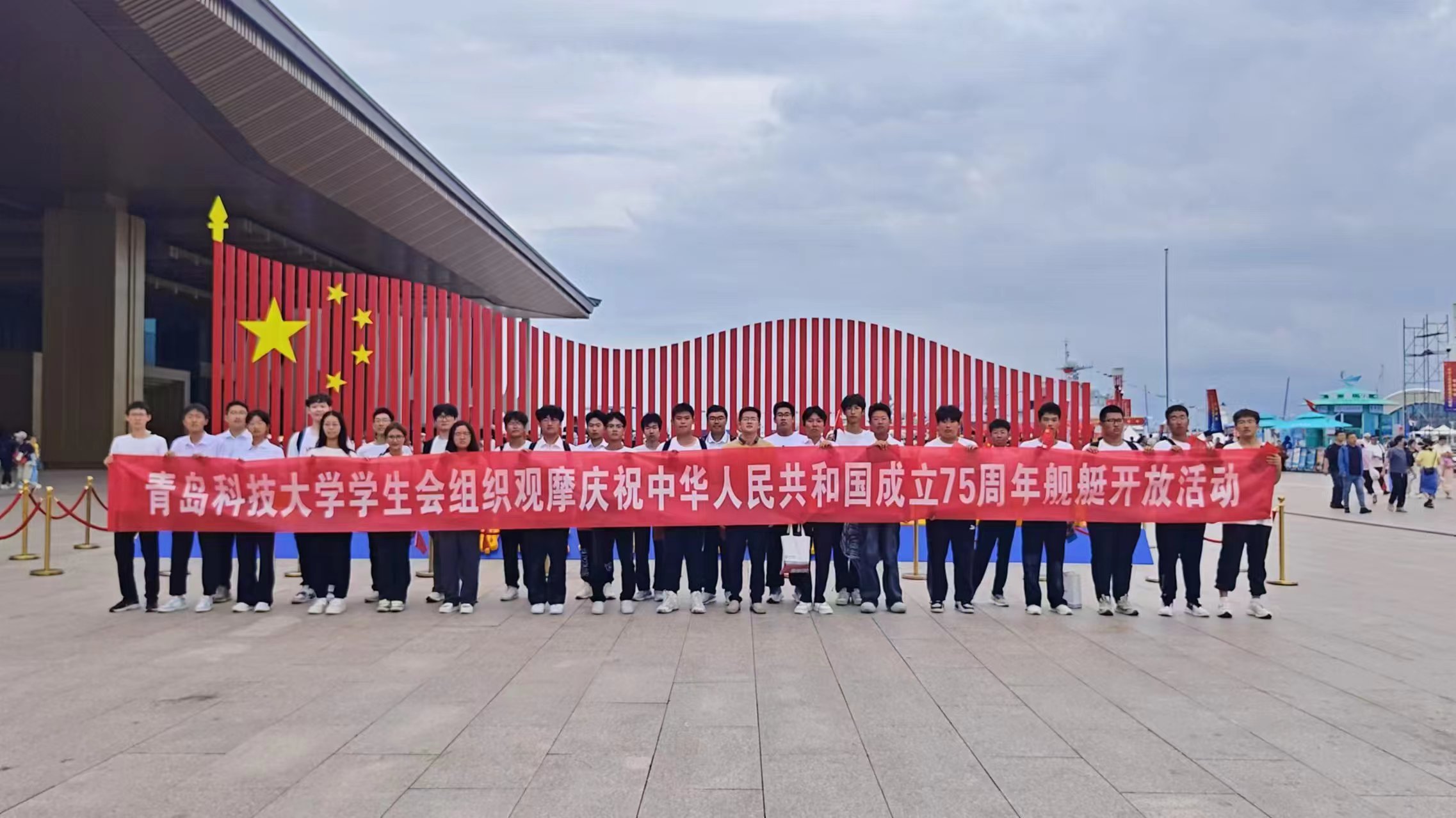 升旗仪式结束后,校团委、校学生会组织学生骨干集中前往奥帆中心码头开展观摩庆祝中华人民共和国成立75周年舰艇开放活动,感受中国海军新时代取得的伟大成就,进一步增强国防意识,厚植爱国主义情怀。