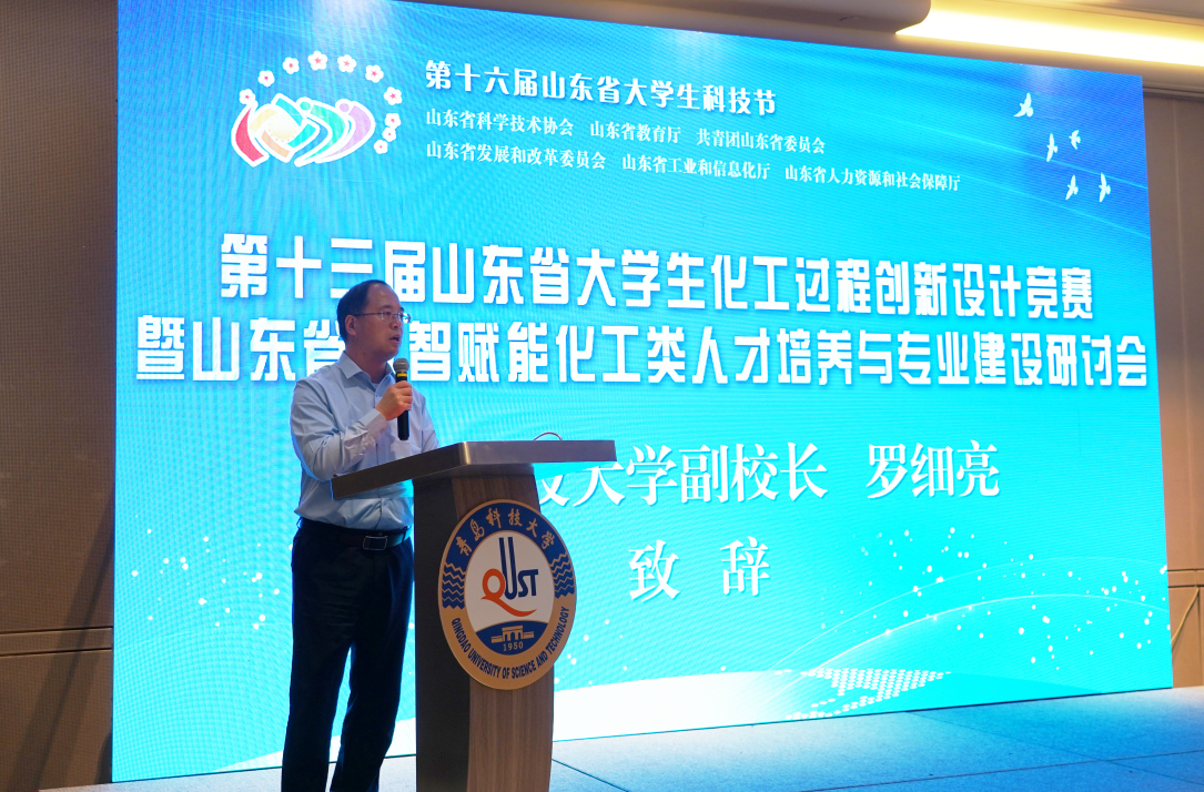 开幕式上,罗细亮代表承办单位致辞,他向领导嘉宾和参赛师生的到来表示欢迎,并简要介绍了学校和化工学院专业建设的基本情况。他表示,学校自2010年开始承办山东省大学生化工过程实验技能竞赛,今年已成功举办十三届,希望通过承办本届竞赛,加强校际之间的交流合作,促进各高校化工专业更高质量的发展。