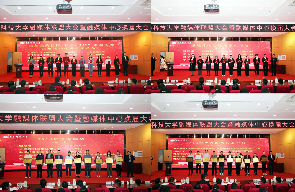 与会领导嘉宾分别为“我和我的祖国/家乡/母校”系列主题征集活动获奖师生及优秀组织单位、融媒体中心优秀学生干部,2024年优秀网站、优秀微信公众平台、新闻宣传先进个人、新闻宣传先进单位颁奖;为365完美体育宣传干事、第五届融媒体中心骨干、第五届融媒体中心副主任和各校区分中心主任、融媒体中心第三批特聘导师颁发聘书。