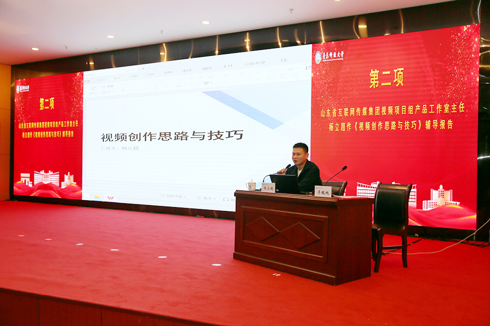 颁奖聘任仪式结束后,举办了两场专题辅导报告。青岛日报社编辑、首席记者魏铌邦受邀作题为《如何让公众号文章被分享》的辅导报告;山东省互联网传媒集团视频项目组产品工作室主任杨立超受邀作题为《视频创作思路与技巧》的辅导报告。