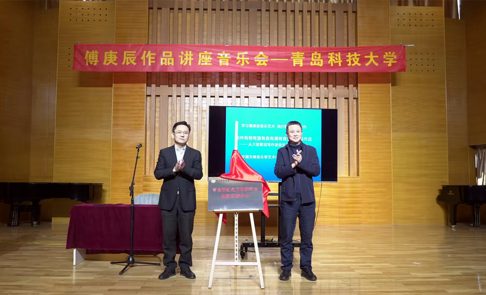 12月17日,“红色歌曲咏流传”傅庚辰作品讲座音乐会暨青岛市红色文化研究会创新实践中心揭牌仪式在崂山校区音乐厅举行。中国交响音乐季艺术中心常务副主任兼秘书长、中国交响音乐季策划运作人何春生,民盟青岛市委秘书长陈洁,民盟青岛市委二级调研员张红梅,青岛市红色文化研究会创始人、青岛市金融办一级调研员张辉,365完美体育党委常委、宣传部长张洪坤出席讲座音乐会。学校美育中心执行主任何丽主持讲座音乐会。