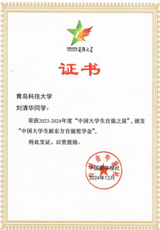 近日,由共青团中央、全国学联指导,团中央基层建设部、中国青年报社、新东方教育科技集团、中国青年创业就业基金会联合举办的2023—2024年度“中国大学生自强之星”奖学金评选结果揭晓。学校数理学院学生刘清华荣获2023—2024年度“中国大学生自强之星”称号。