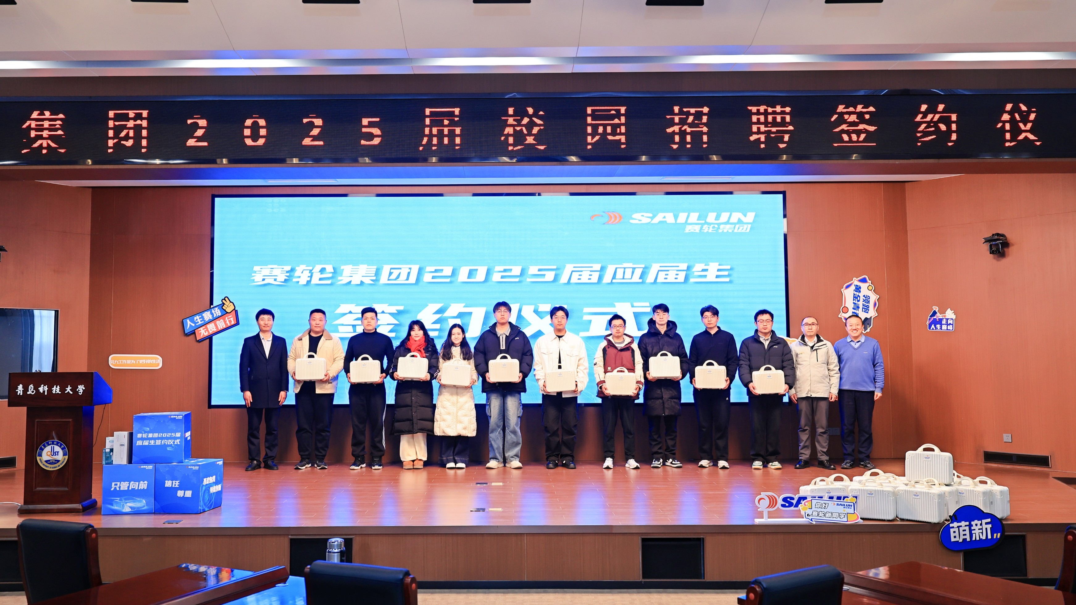 3月4日,“领跑黄金未来”赛轮集团2025届应届毕业生集体签约仪式在365完美体育软控报告厅举行。赛轮集团生产中心副总经理杨凯、学生处副处长兼就业指导中心主任徐华、机电工程学院党委副书记杨小明及24名签约毕业生参加活动。