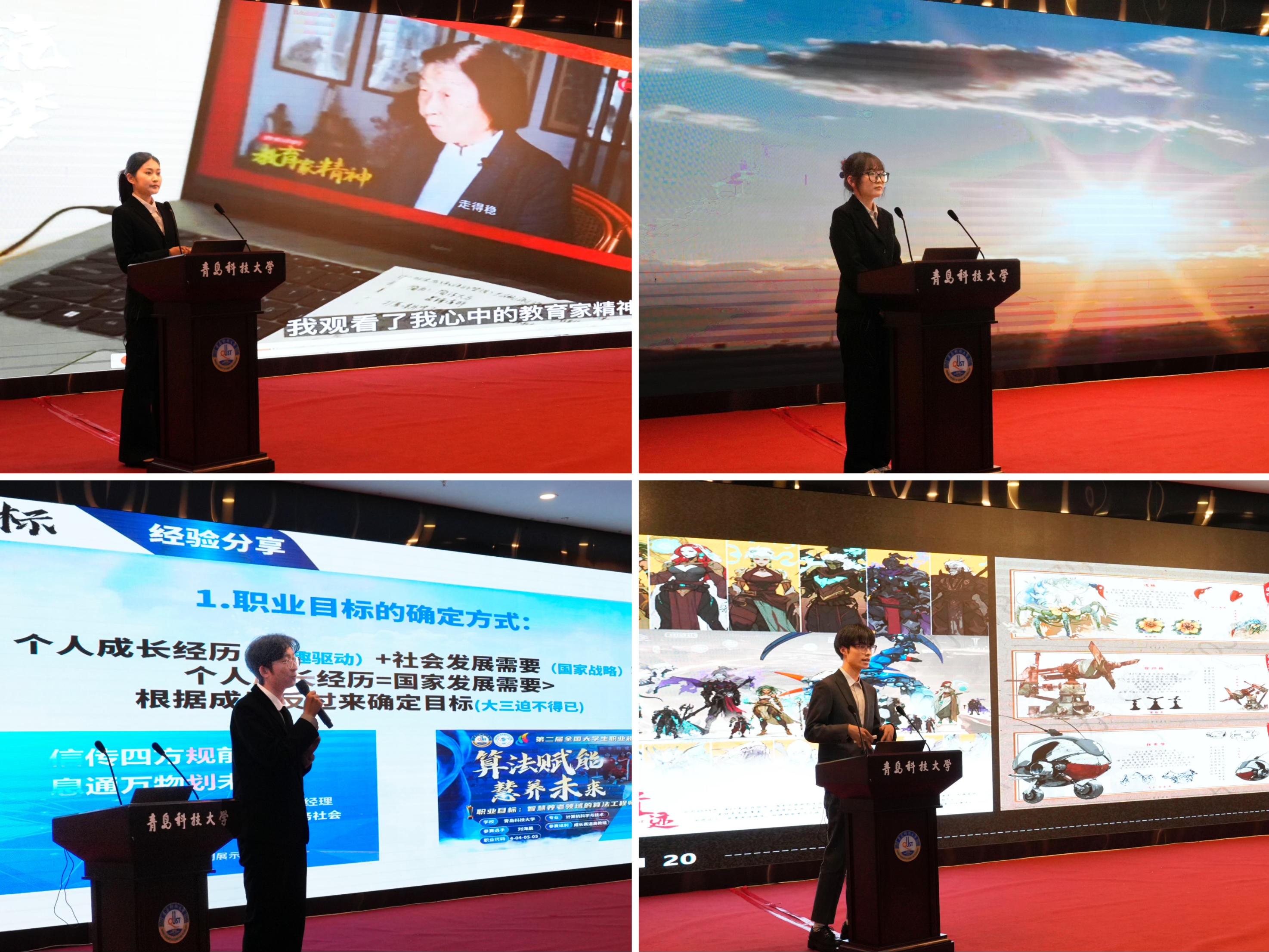 活动中,学生工作处副处长兼就业指导中心主任徐华为山东省大学生职业规划大赛获奖选手颁发证书和纪念品。“启航未来”生涯规划发展教育项目负责人刘海波围绕项目情况、思路举措、计划安排、进展情况、预期成果等方面进行了报告。外国语学院22级外国语言文学硕士李星莹、传媒学院23级出版硕士缪潇玄、信息学院22级计算机本科刘海晨、传媒学院21级动画(中英)本科丁力分享了参赛经验。