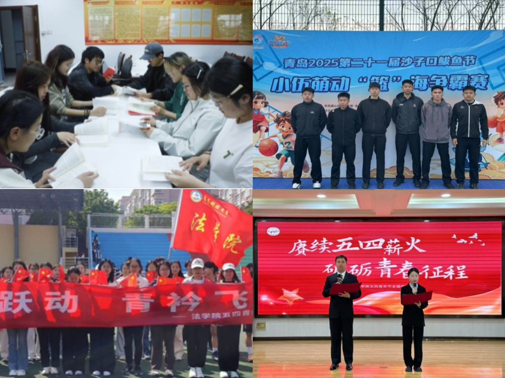 传媒学院团委开展“书香五四,阅读筑梦”读书分享会,结合《习近平与大学生朋友们》等书籍,为青年培根铸魂、为时代发展蓄力;马克思主义学院团总支举办“赓续五四薪火,砥砺青春征程”朗诵比赛,以声为舟、以情作桨,用铿锵有力的声音传递信仰力量;法学院团委开展“传承·奔跑·超越”五四接力跑,通过300米×18棒的接续奔跑,以集体接力的形式共同奔跑出“5.4”公里的青春轨迹;体育学院团委组织“爱体育 兴科大”体育赛事志愿服务团队,走进沙子口街道协助开展“沙子口鲅鱼节”篮球赛事志愿服务活动,将体育学科专业优势与志愿服务深度融合。