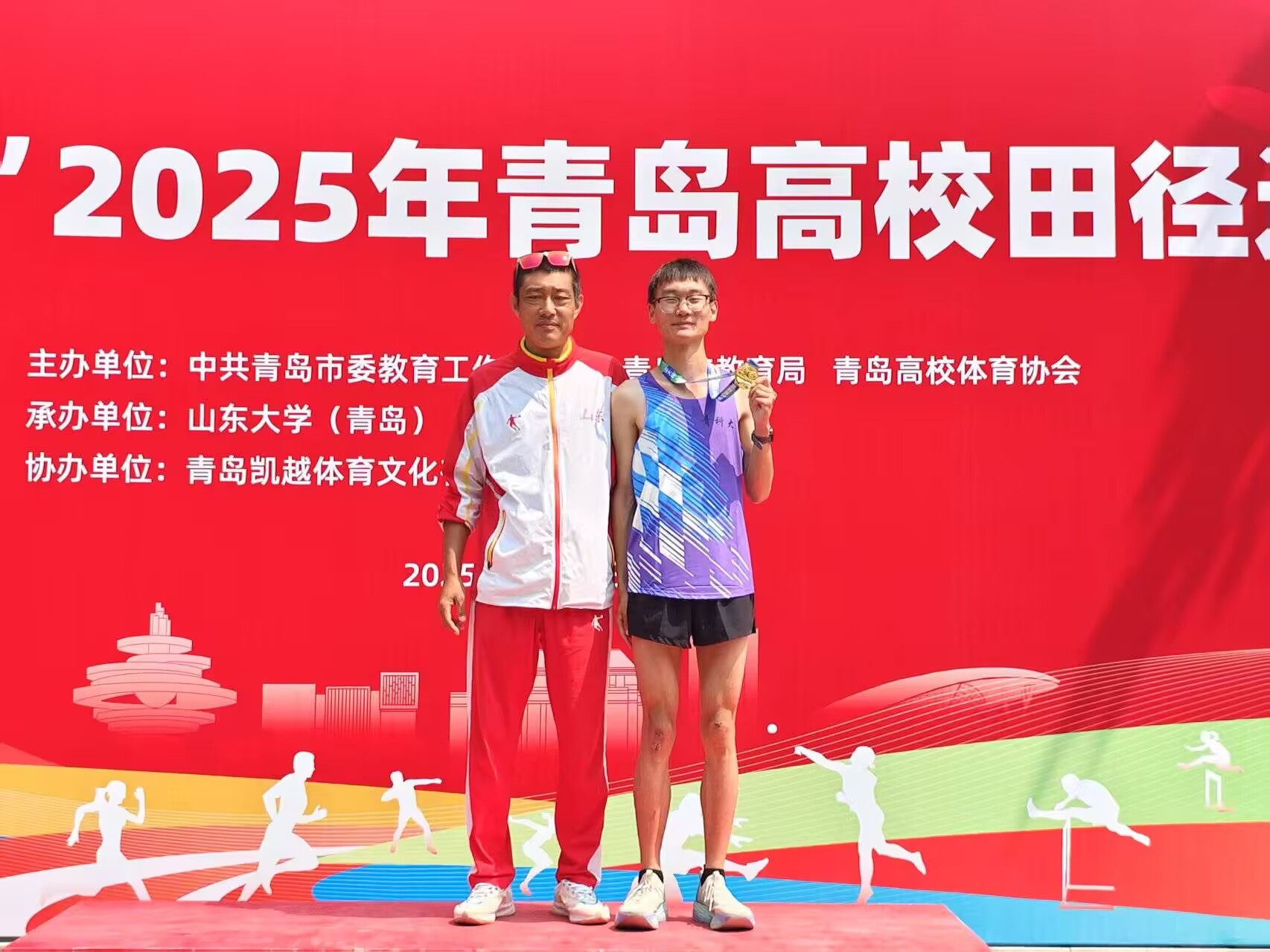 5月29日至30日,“山大杯”2025年青岛高校田径运动会在山东大学青岛校区举行。在男子5000米决赛中,化工学院学生张孝康以15分53秒62的成绩勇夺冠军,再次刷新由自己保持的校运会纪录,并成功取得二级运动员证书。