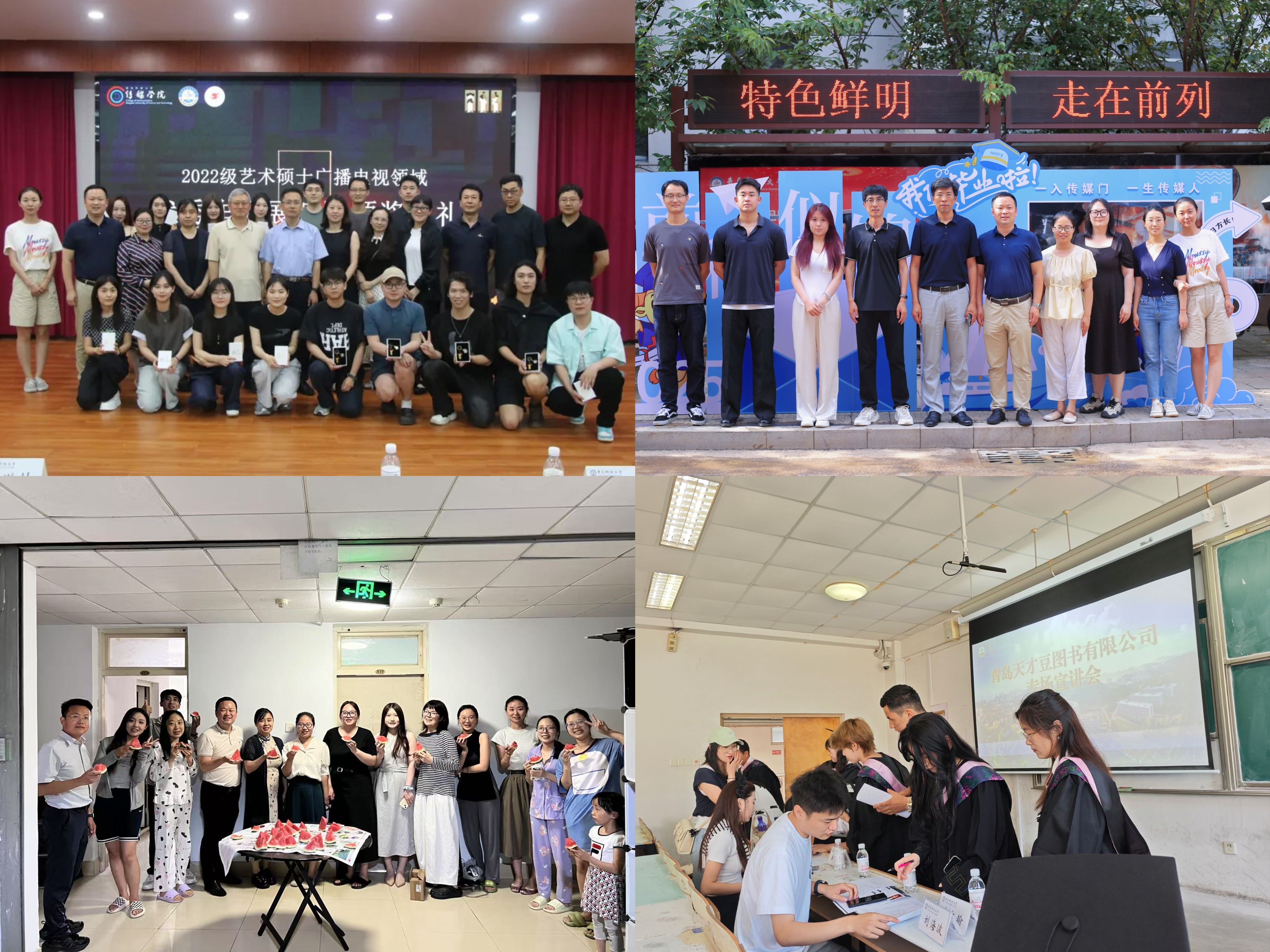 聚焦学生关切,做好离校服务。学院领导班子成员、辅导员深入毕业生宿舍,走访慰问毕业生离校计划和就业状况,送上可口的西瓜和文创纪念品,表达殷切希望和美好祝福。动画专业毕业作品展、艺术硕士(广播电视领域)优秀作品展映暨颁奖典礼相继精彩展映。组织开展“职引未来”2025届毕业生离校前专场招聘宣讲会,优化人才供需对接,促进毕业生高质量充分就业。在宿舍楼门口、学院平台等地点设置毕业离校咨询服务点、安排志愿者,帮毕业生搬运行李等,为毕业生提供全方位贴心服务。