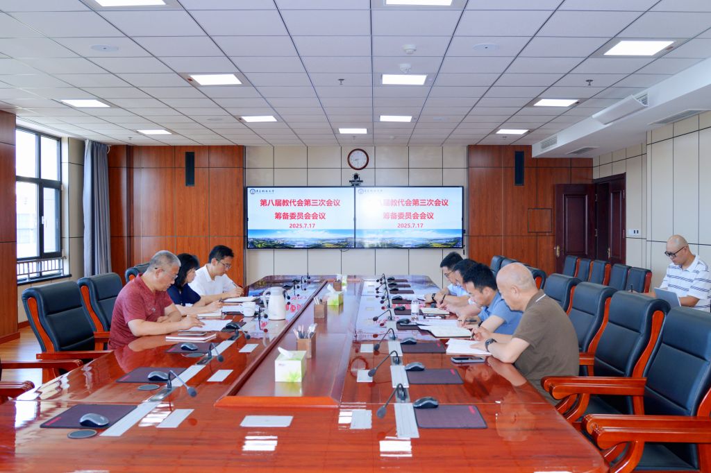 7月17日上午,学校第八届教代会第三次会议筹备会议在崂山校区综合服务楼6015会议室召开。党委副书记、筹委会主任沈文青出席会议并讲话,党委常委、党委宣传部(党委教师工作部)部长张洪坤出席会议。校工会主席郭永主持会议。