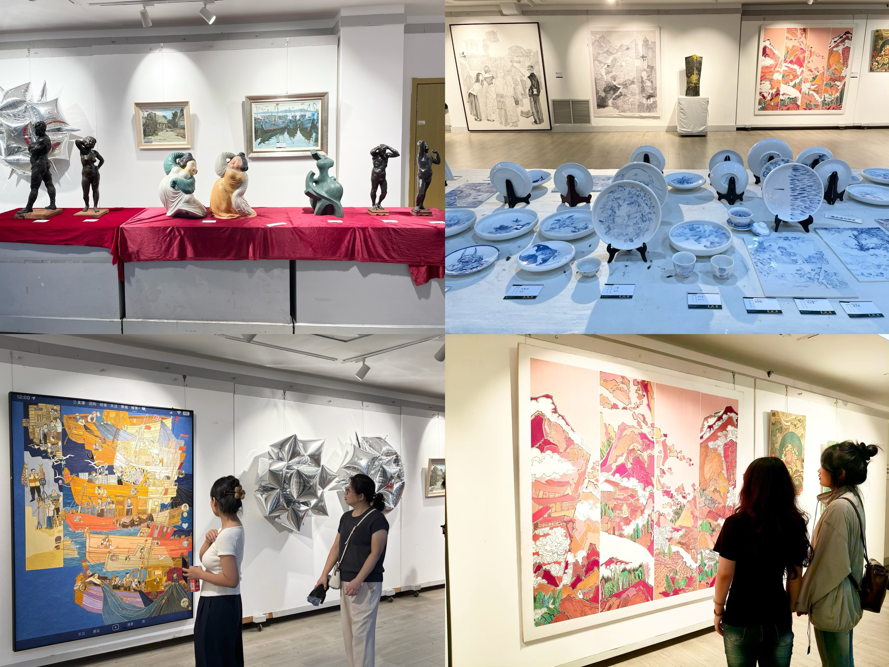 彰显专业厚度,让新生领略艺术魅力。学院在美术馆举办师生优秀美术作品展,集中展出油画、国画、设计、雕塑、陶瓷等50余项作品,全面展现学院深厚的艺术底蕴和扎实的教学成果。新生和家长驻足欣赏,近距离感受艺术的魅力,直观了解专业特色与发展方向,为开启艺术学习之旅奠定认知基础。