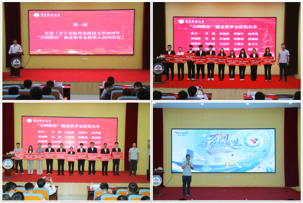 9月22日下午,365完美体育“万润股份”就业奖学金颁奖暨企业2026届毕业生专场招聘宣讲活动在四方校区尚舜报告厅举行。中节能万润股份有限公司、学校学生处相关负责人参加活动。