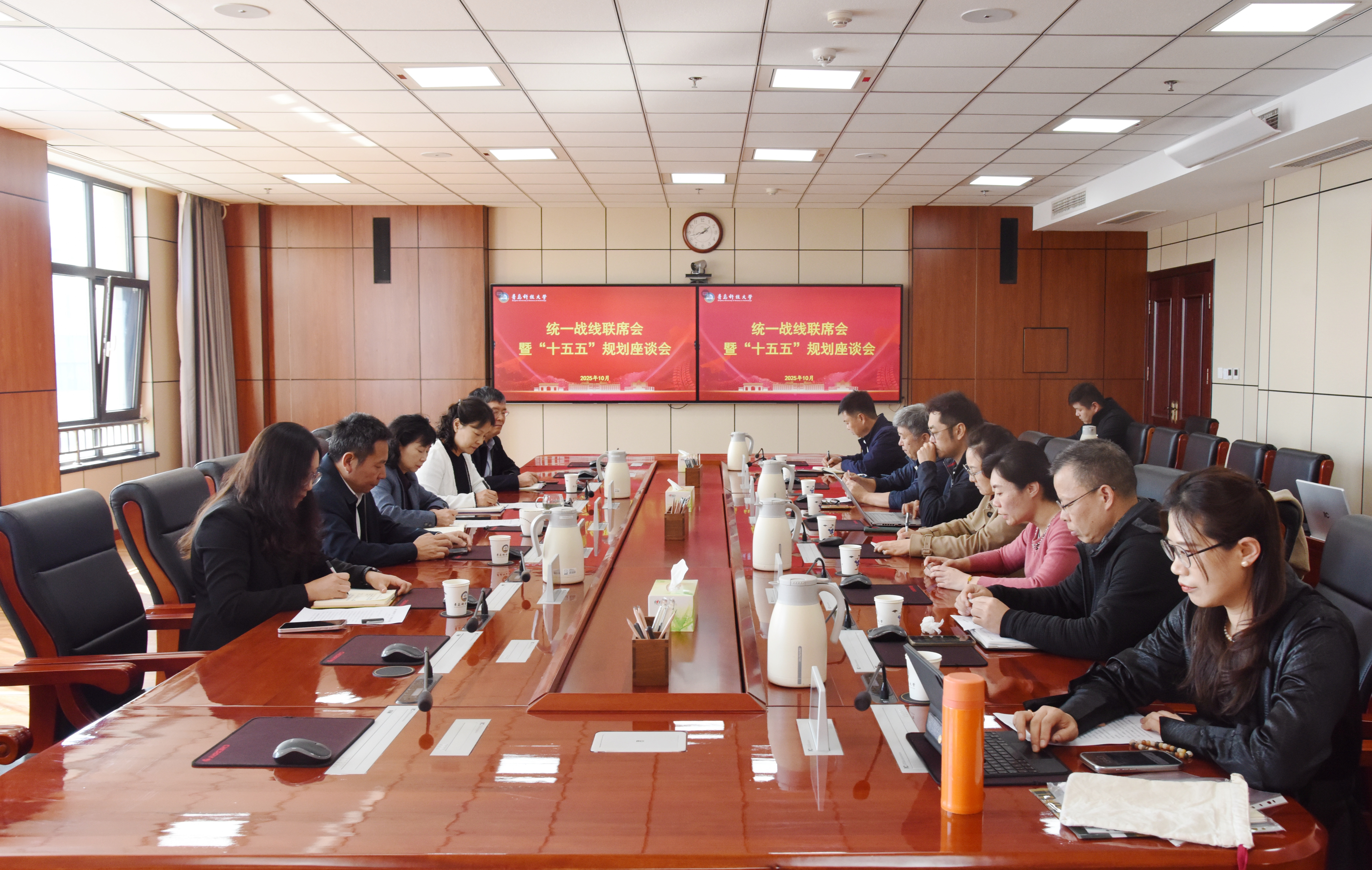 10月21日,学校统一战线联席会暨“十五五”规划座谈会在崂山校区召开。学校党委副书记沈文青出席并讲话。党委常委、统战部部长秦姣主持会议。