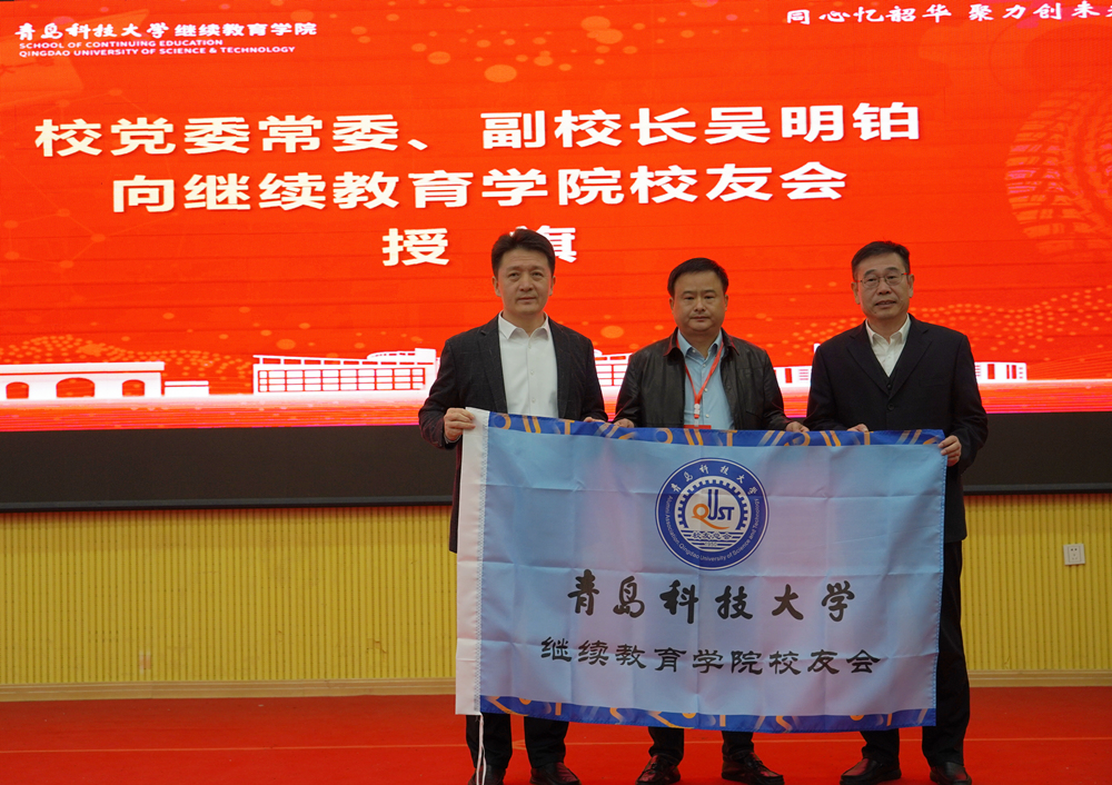 吴明铂向继续教育学院校友会授旗并对校友会建设提出三点意见:一要聚焦“终身学习”,打造核心特色。要紧密围绕“终身学习”这一核心,充分整合学校优质课程和学术资源,通过线上线下相结合的方式,为校友建立一个可持续的知识更新与能力提升平台。二要强化服务赋能,实现价值共赢。校友会要树立强烈的服务意识,主动为校友的事业发展、合作交流铺路搭桥;同时积极创造条件,鼓励并引导校友们反哺母校,形成“母校助力校友成长,校友助推母校发展”的良性循环。三要健全运行机制,保障规范长效。要推动品牌活动项目化,由专人负责,目标明确,使校友会(终身学习联盟)的工作融于日常,实现可持续、高质量发展。